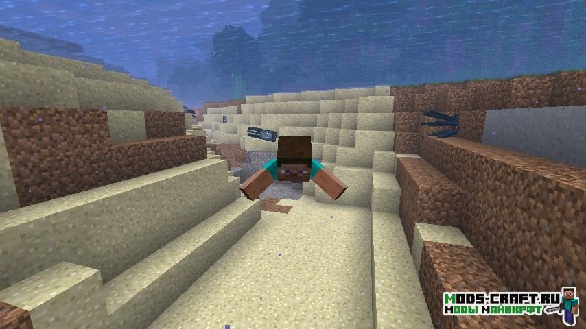 Aqua Acrobatics — это модификация, которая портирует на версию Майнкрафта 1.12.2 механику плавания из более современных версий игры. Чтобы активировать данный режим необходимо нажать Shift во время плавания игрока в воде. Теперь анимации движения под водой будут более плавными, а также вы сможете проникать в более узкие проёмы для исследования дна океана.