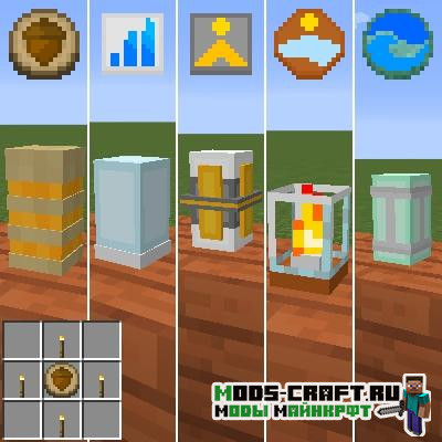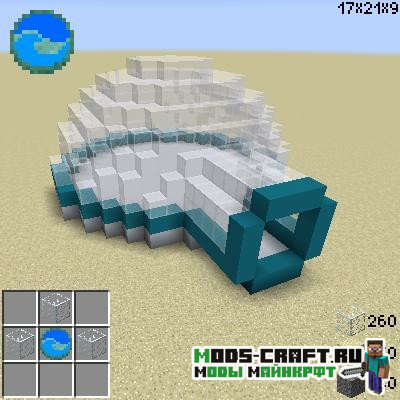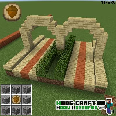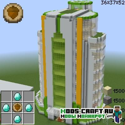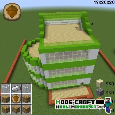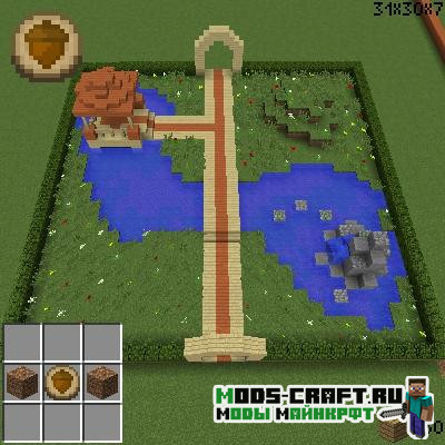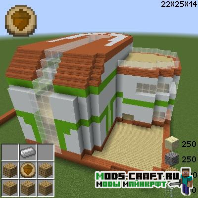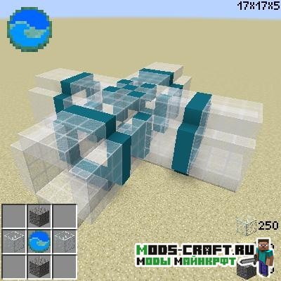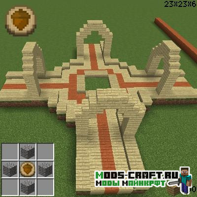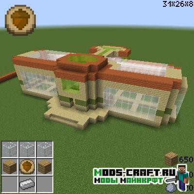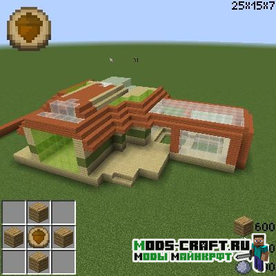 Модификация позволяет вам создавать специальные блоки, которые будут в автоматическом режиме строить выбранные здания и различные декоративные постройки. Здесь присутствует 5 стилей построек: природная, современная, подводная, пустынная и бетонная.