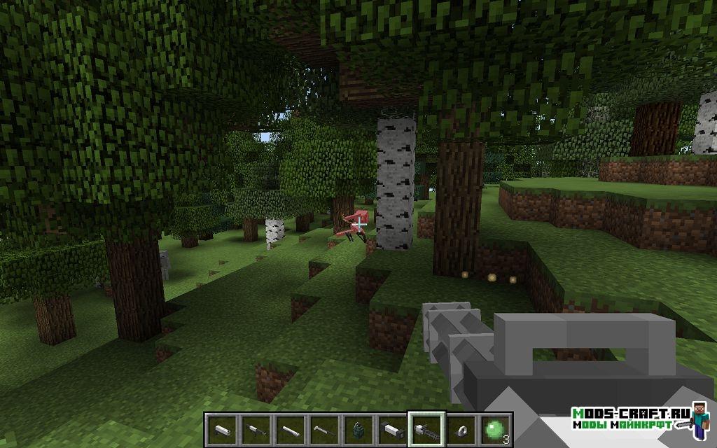 Мод Working Gun добавит в игру Майнкрафт огнестрельное оружие, из которого можно будет стрелять и убивать мобов. Кроме этого на каждую единицу орудия можно устанавливать различные обвесы в виде лазерных прицелов и оптики, что повышает точность.