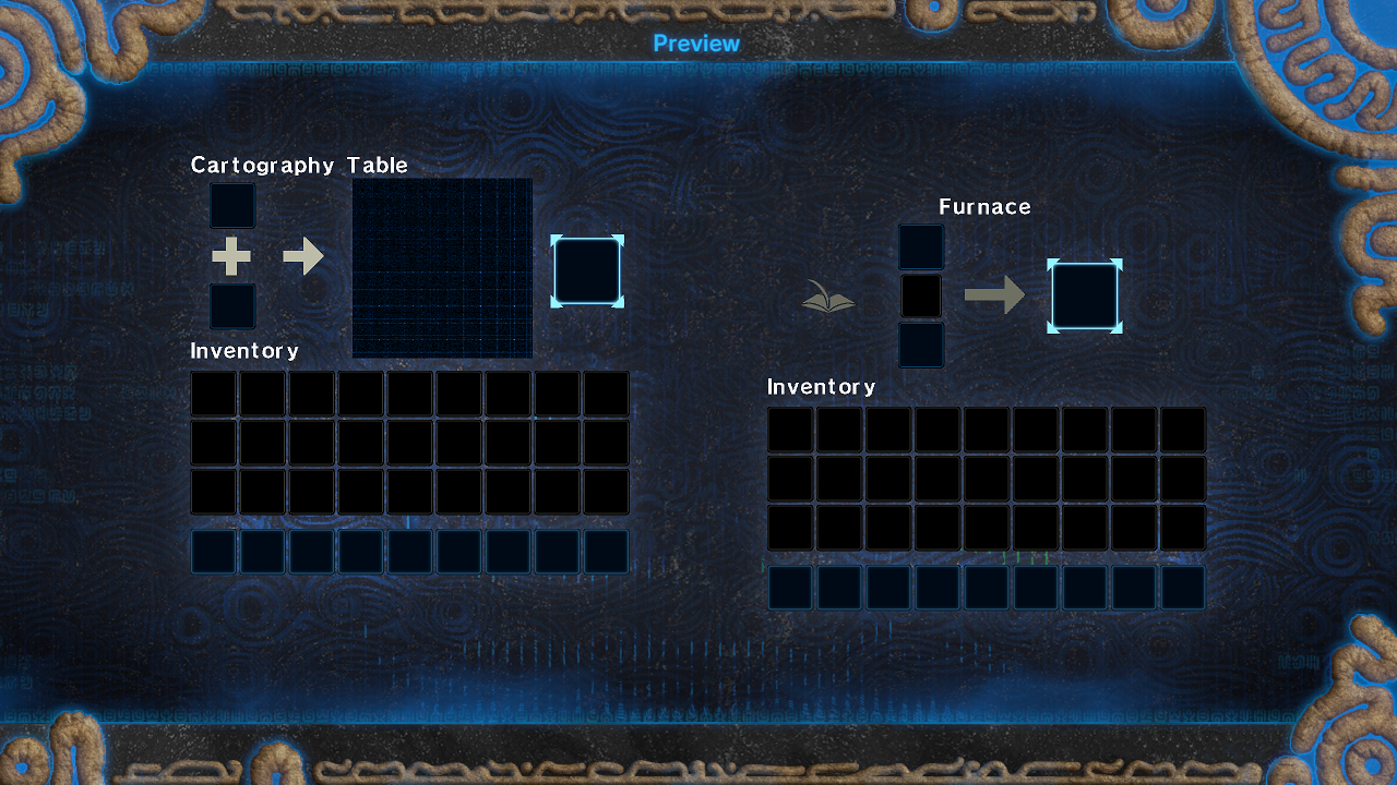 Забудьте о стандартных графических элементах — GUI блоки, экраны и интерфейс будут адаптированы под стилистику Зельды. Даже главное меню получит тематическое оформление, чтобы вас сразу погрузить в мир приключений и загадок.