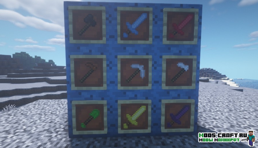 Craftworld — это глобальный мод, который пытается сделать выживание в игре Майнкрафт более увлекательным. Он добавит новые биомы, структуры, мобов, оружие, инструменты, броню, руды, блоки и предметы. Также при помощи печенья вы сможете позвать к себе в компанию нового компаньона — Алекса. Он будет сражаться на вашей стороне, поэтому необходимо дать ему хорошие доспехи и оружие, для этого откройте его инвентарь и положите туда необходимые предметы.