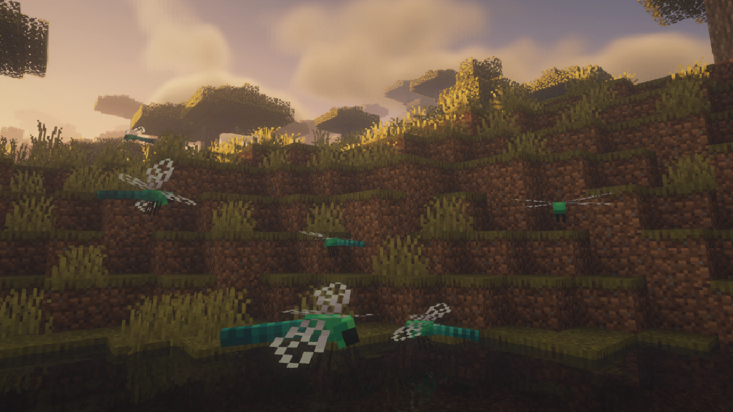 Мод Critters and Companions вводит некоторых из самых увлекательных мобов, включая стрекоз. Эти насекомые имеют приятный внешний вид и демонстрируют уникальную анимацию, когда они машут крыльями во время передвижения. Это быстрые существа, которых сложно поймать или уничтожить. Хотя у стрекоз пока нет определенной функции в игре, они в основном появляются в реках и побережьях различных биомов.