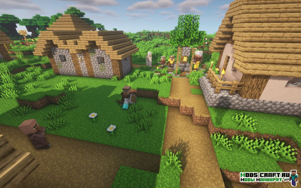 Сборка предлагает игроку увлечься интересным развитием либо собственной, либо уже имеющейся деревни в игре Майнкрафт. Создавайте колонии, нанимайте рабочих и стройте различные служебные здания — эти возможности дает известный мод Minecolonies. А благодаря Regrowth жители станут гораздо умнее: начнут строить стены вокруг деревни, стричь газоны и ремонтировать дороги. У разбойников появятся логова и они начнут активно совершать набеги на деревни. Также вы встретите в разных биомах новых животных и использовать их в сельском хозяйстве.
