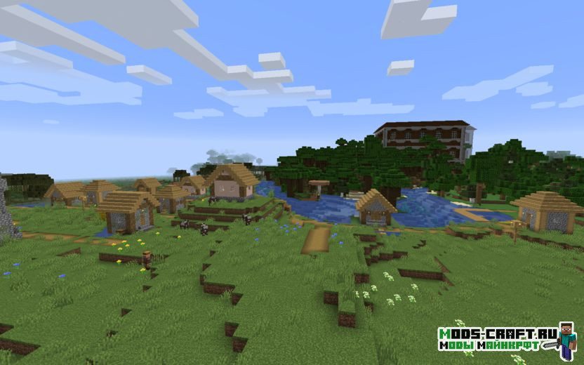 Сид переносит вас в очень необычное место, где располагается равнинная деревня между двумя особняками. Один из них будет виден возле деревни, а чтобы найти второй особняк нужно пойти в обратную сторону по координатам 120, 270. За ним будет находится разрушенный портал (координаты: 165, 372). На версии майнкрафт 1.15.2 генерация таже, но без портала.