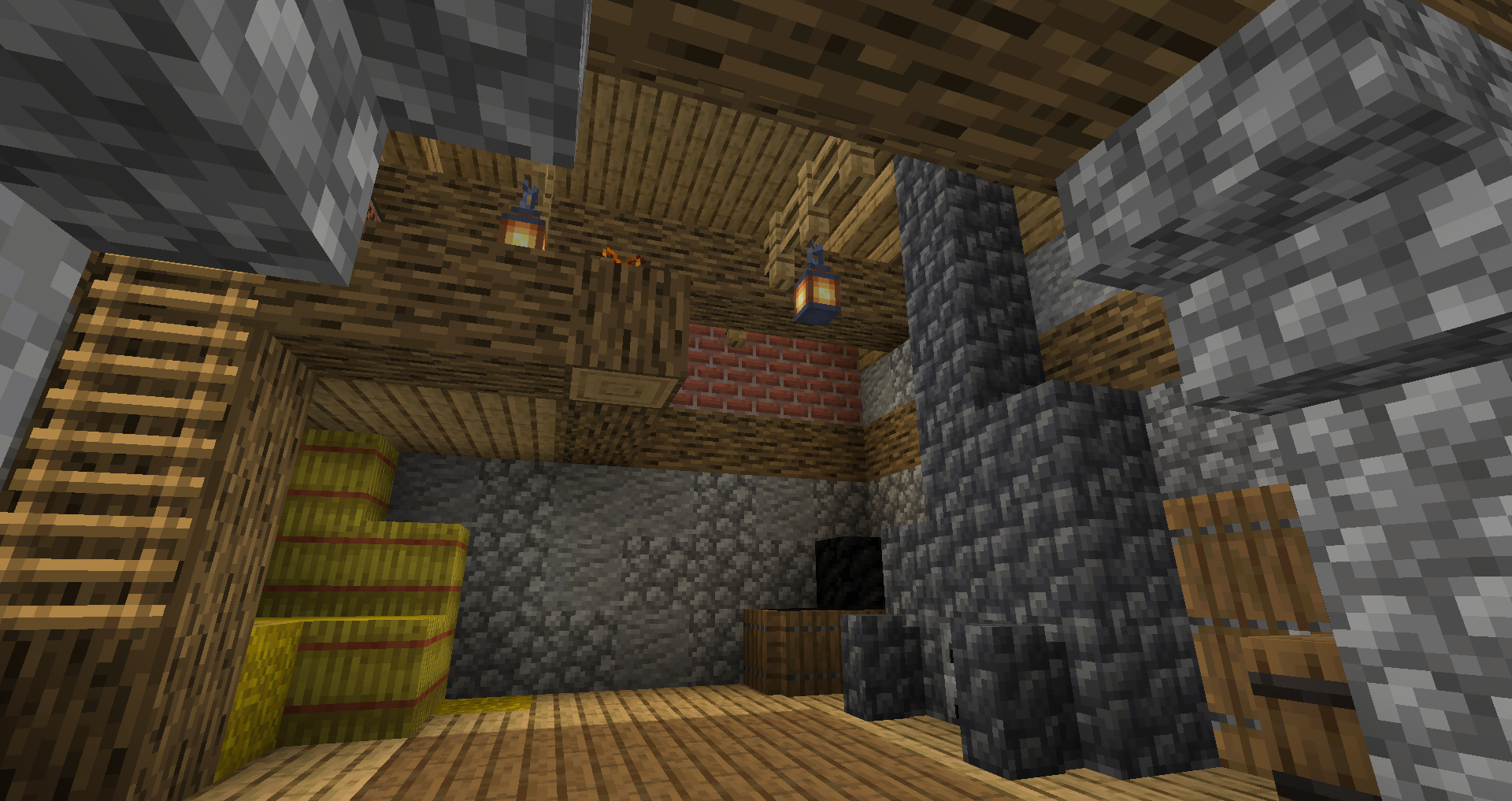 Следующее место — ранчо, которое расположено на полях. Основным зданием здесь является каменно-кирпичный амбар, в котором хранится огромный запас снопов сена. Еще одним полезным блоком является уголь, который хранится рядом со сланцевой печью и бочками, заполненными разнообразным лутом. Также в амбаре есть простой подъем на чердак, где находится музыкальный проигрыватель. Внутри этого проигрывателя обязательно есть музыкальная пластинка с новым треком. Здесь также находится бочка с различными драгоценностями.