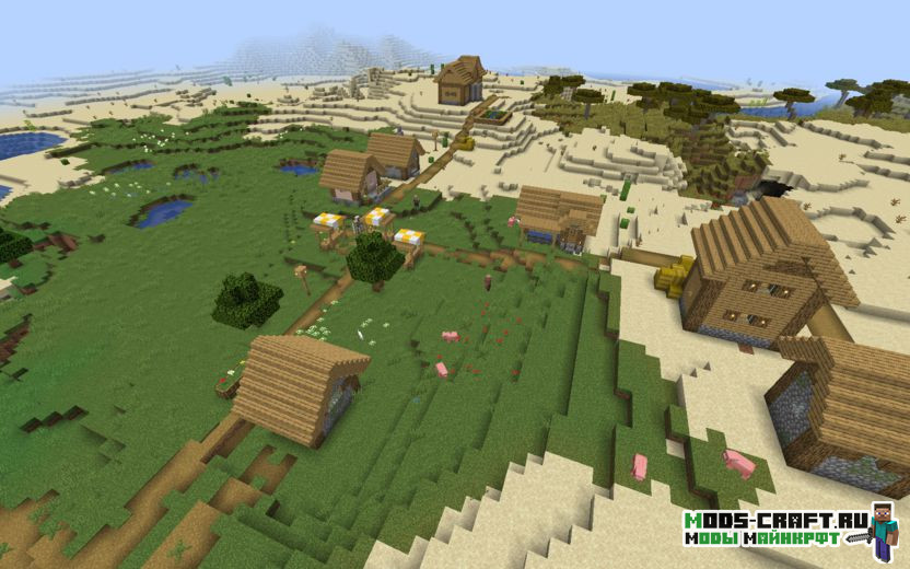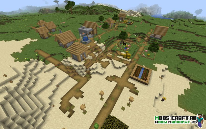 При помощи данного сида ты окажешься в очень интересном месте между двух равнинных деревень, расположенных близко друг к другу. А под ними ты сможешь найти заброшенную шахту. Рядом расположена живописная и глубокая река, поэтому выживать здесь одно удовольствие.