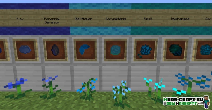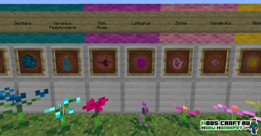 Extra Colours добавляет различные декоративные блоки, растения и новые красители для более разнообразного строительства в игру.