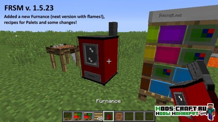 Подводя итоги, мы получаем всего по немногу из предметов декора для Майнкрафт, установив мод FRSM. Что-то ещё не полностью функционирует и выступает лишь как декор, а что-то уже можно использовать, как например, холодильник и телевизор.