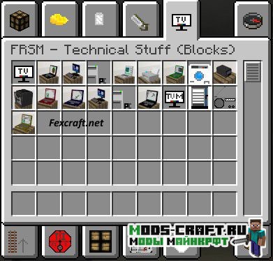 Декоративный мод FRSM (Fex’s Random Stuff) добавит множество блоков разной направленности. Здесь вы сможете создать бытовую технику — телевизор, ноутбук, персональный компьютер, холодильник, духовку, стиральную машину и часы.