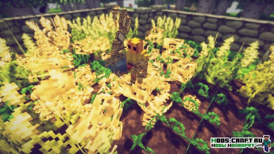 Мод добавит очень слабого голема-фермера, который будет убегать от вражеских мобов, способного собирать урожай, выращенный вами в огороде и сажать его заного. Сам по себе он довольно небольших размеров и довольно милый.
