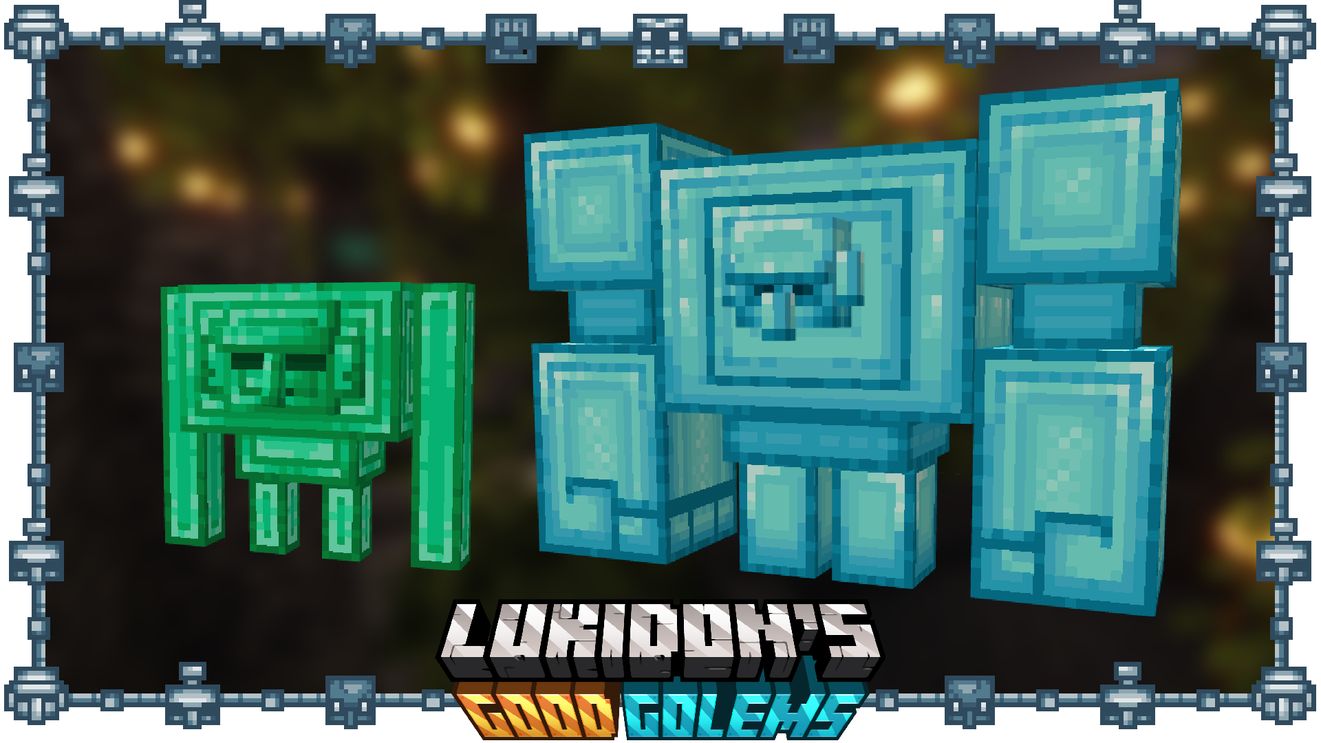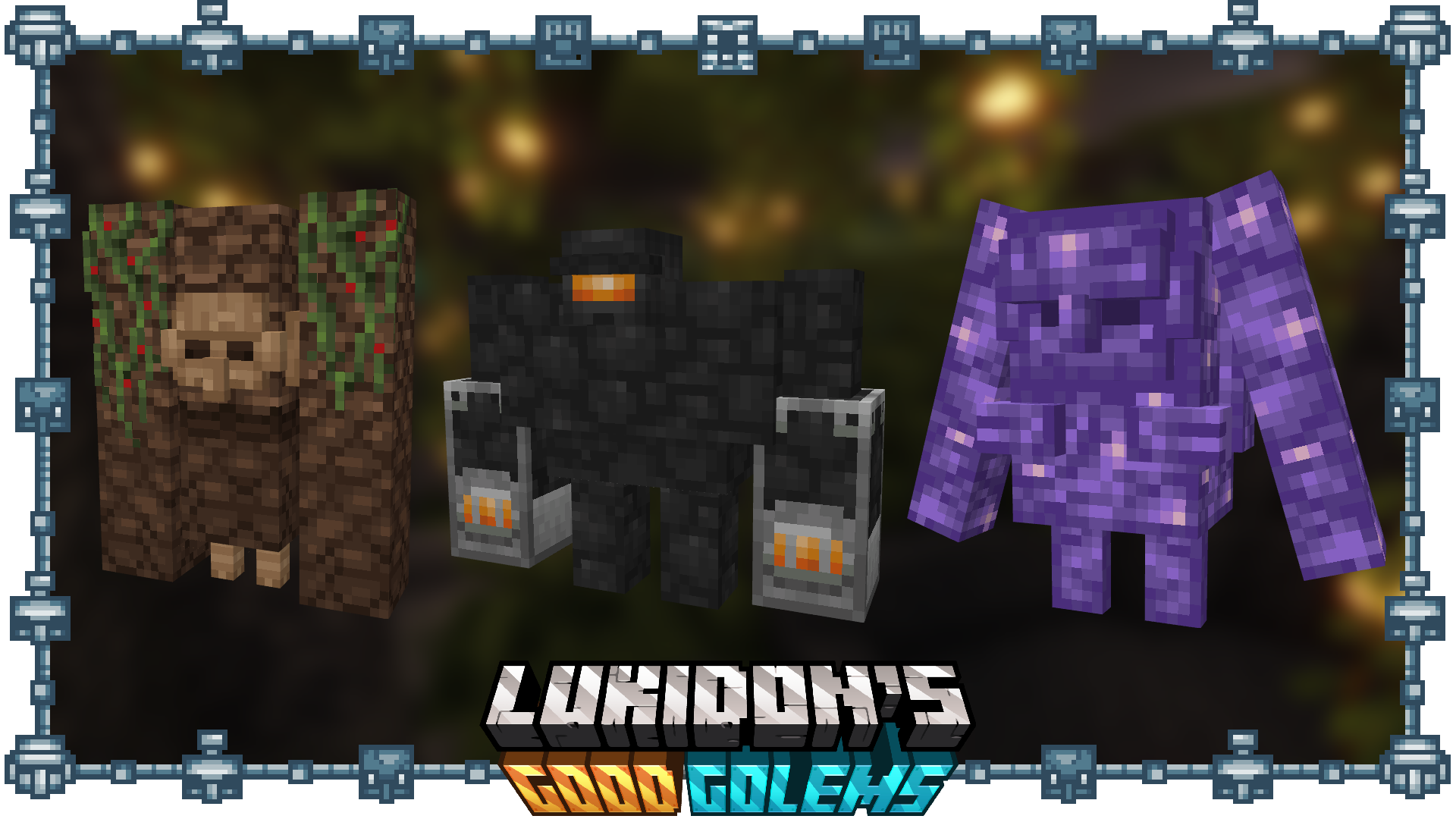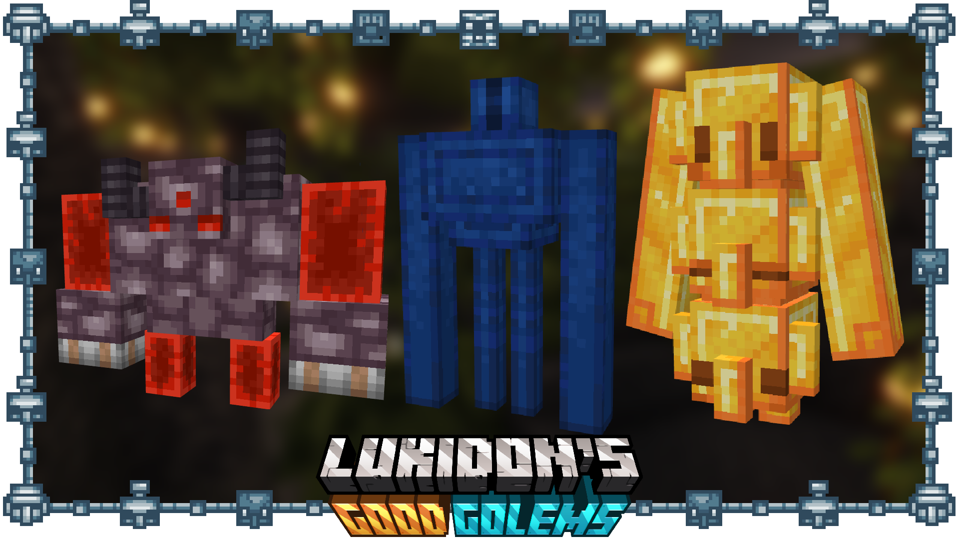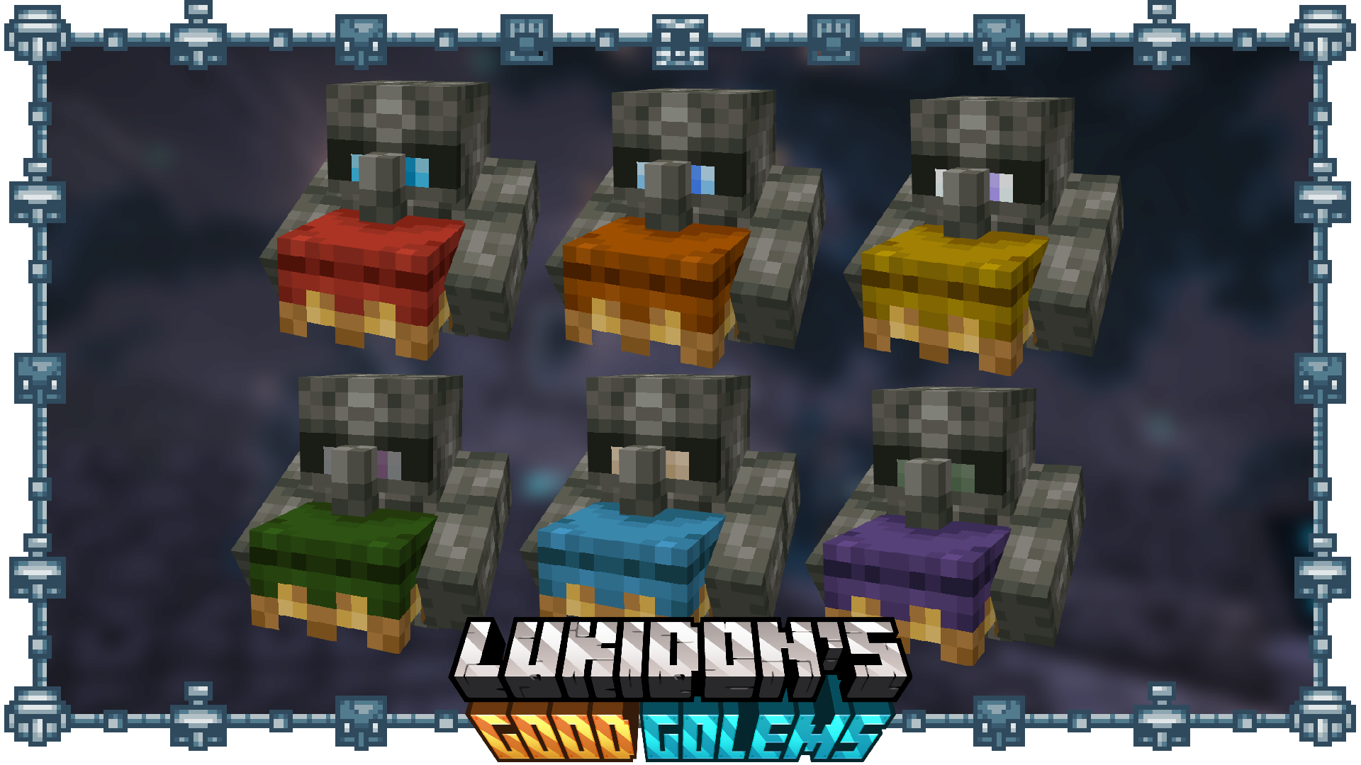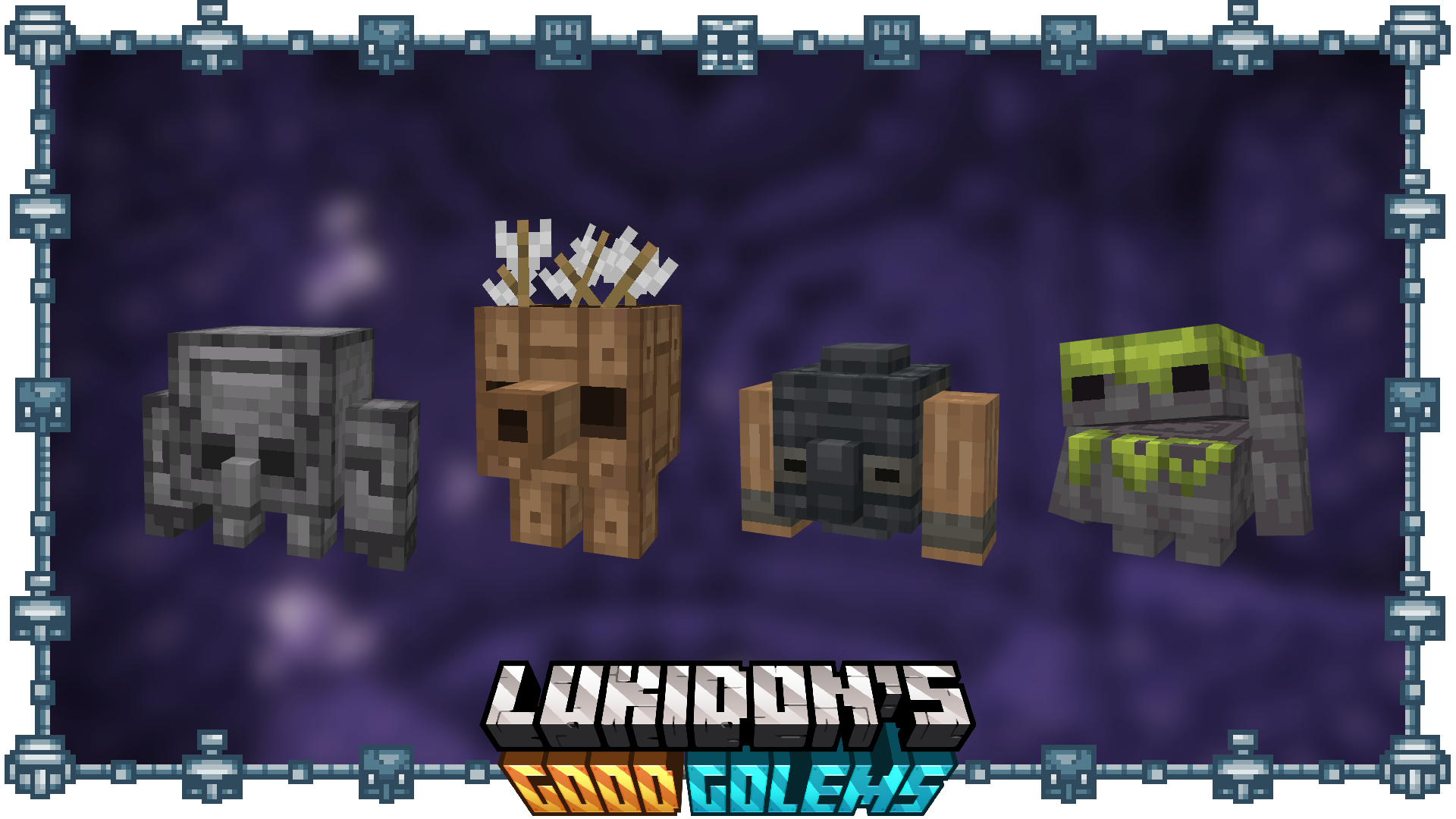 Модификация Good Golems предоставляет интересное обновление для големов в Minecraft, придая им разнообразные внешние облики и вдохновившись рудной тематикой и персонажами из других игр этой вселенной. Это позволяет игрокам украсить свой мир уникальными големами и добавить разнообразие в игровой процесс.