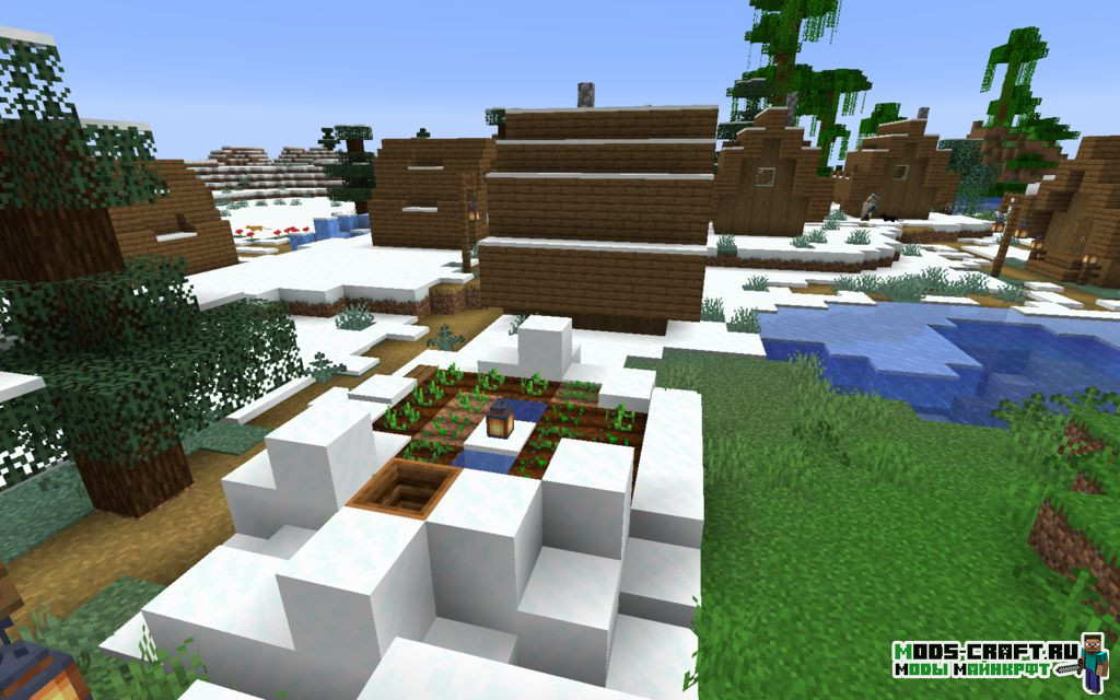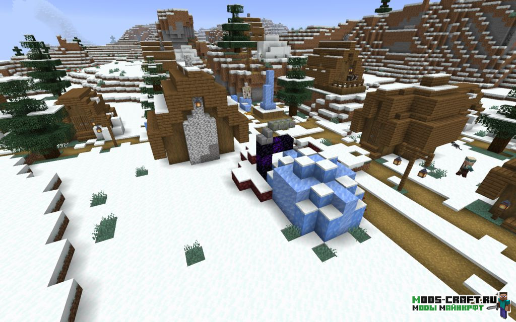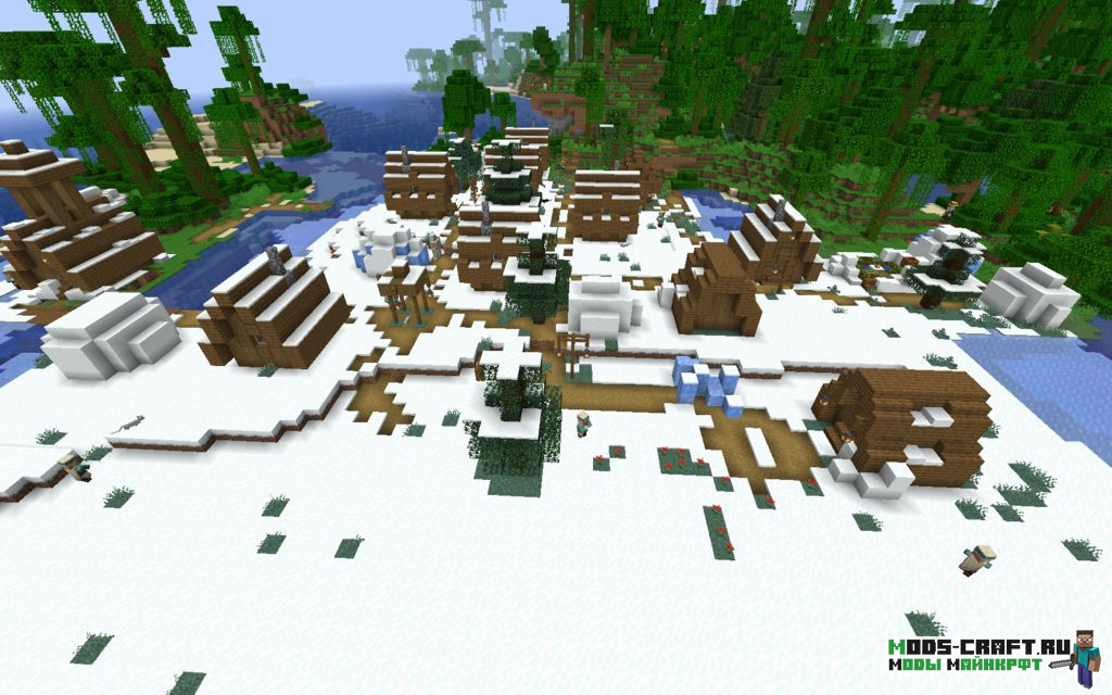 Очень интересный сид, который заспавнит вас прямо возле храма в джунглях и зимней деревней. В храме есть несколько слитков золота и железа, что даст буст в начальном развитии. А если идти дальше по снежной равнине, то можно наткнуться на вторую зимнюю деревню (координаты: -245, 290) с имеющимся разрушенным порталом в нижний мир.