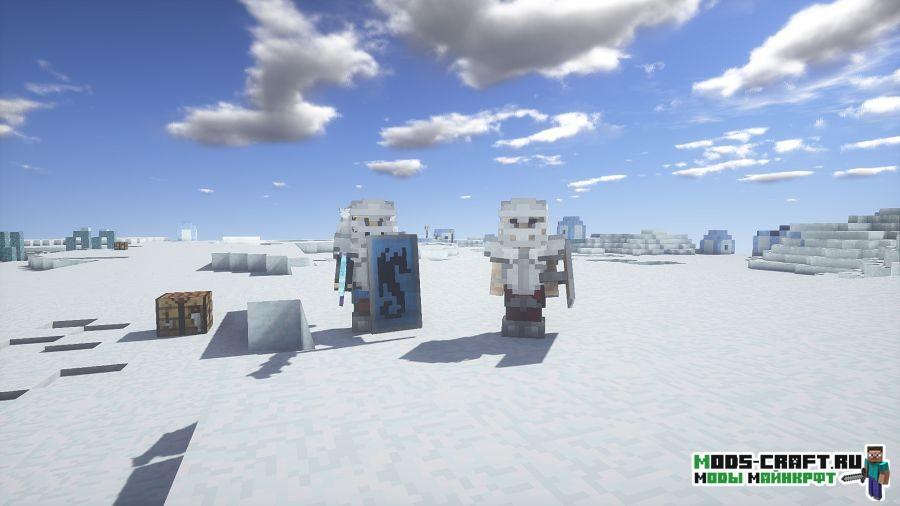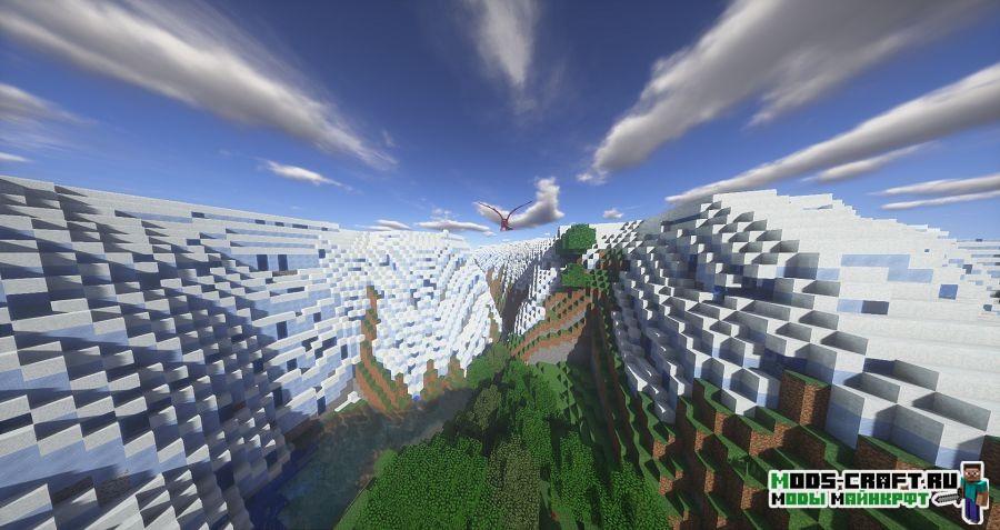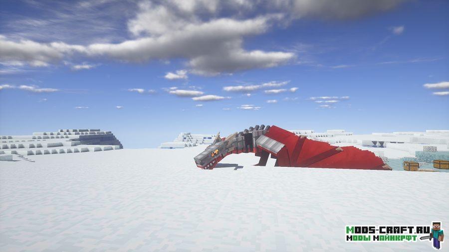 Ice and Fire — это глобальный мод, который добавит в игру множество разных драконов, пылающих огнём, льдом и даже молнией. Огненный драконы обитают в жарких биомах и способны испепелить игрока за считанные секунды, а ледяные живут в холодных биомах и им не составит труда заморозить любого одним мгновением. В последних версиях появилось большое количество новых видов драконов и мифических и других существ: циклопы, тролли, змеи, снежные люди и другие опасные твари. У жителей появится красивая тематическая одежда под их место обитания. Вы сможете создавать новые виды оружия, брони, инструментов, руд, флагов, баннеров, блоков и находить новые руды.