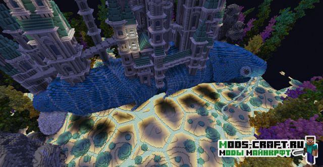 Очень красивая карта под оригинальным названием «Traveling Atlantis», которая добавит огромный и красивый подводный мир в Майнкрафт. Спустись на дно и изучай для себя подводный город и вливайся в местную фауну. В центре расположен небольшой город и памятник культуры в виде статуи-человека и огромный рыбы.