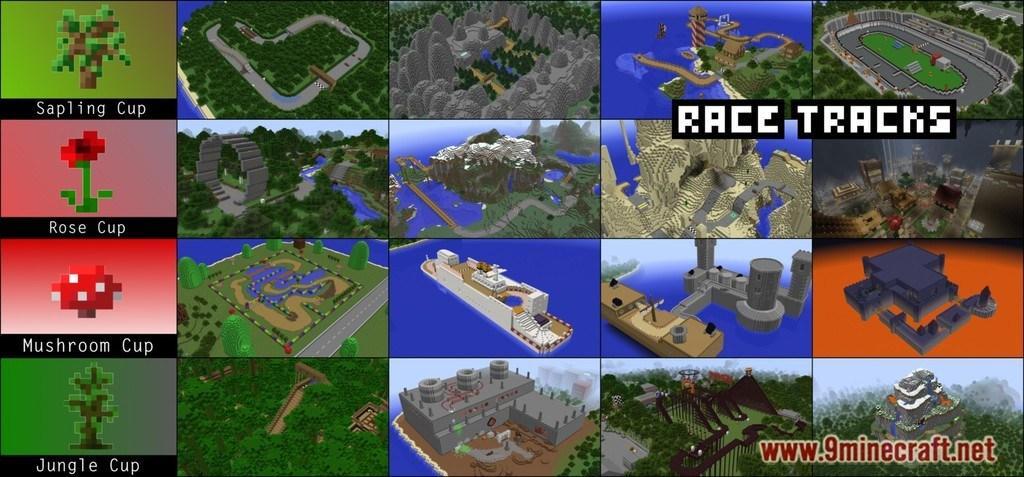 Эта карта основана на знаменитой гоночной игре Mario Kart от Nintendo. На этой карте вы гоняете спринтом. Есть система ускорения. Там также пункт коробки и нагрузок элементов. Запуск над некоторыми блоками даст вам такие эффекты, как скорость, повышение прыжка, или сопротивления.