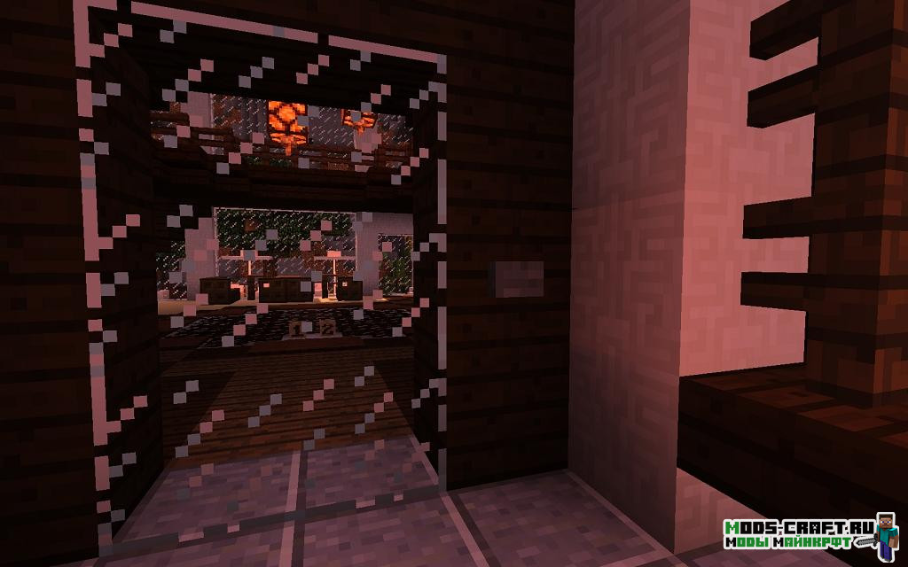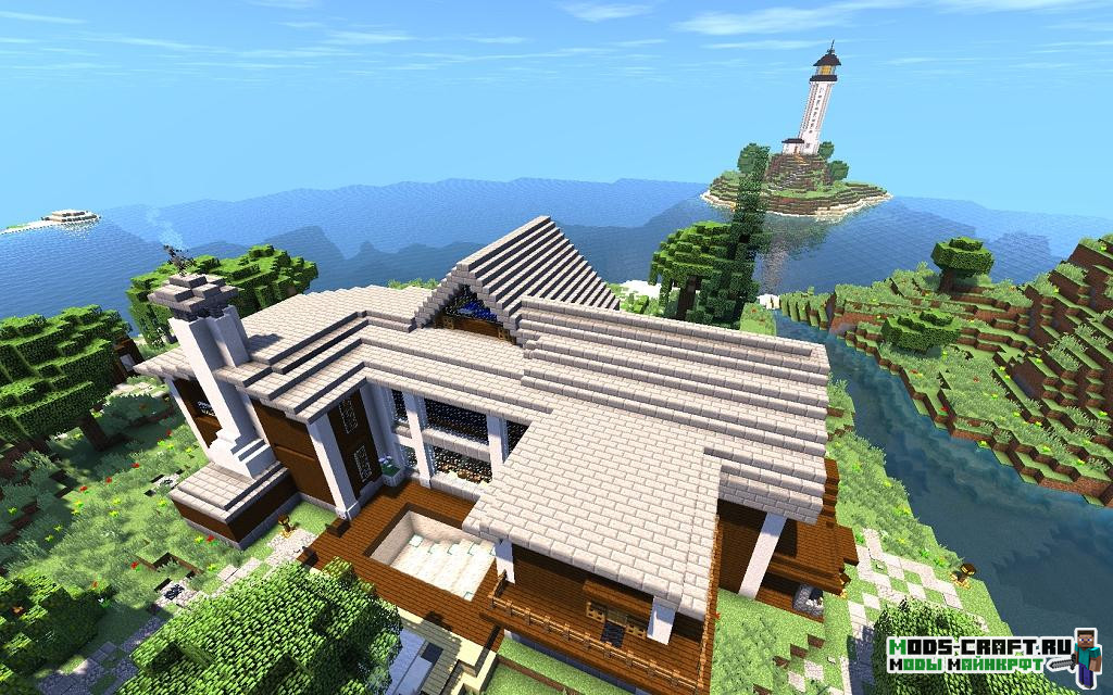 Карта добавит огромный механический дом, который содержит более 100 различных интересных механизмов — выдвижные лестницы, секретные помещения, активируемый фонтан и многое другое ждёт вас. Некоторые решения сделаны с помощью командных блоков. При загрузки мира вы появитесь возле эвакуационного домика. Чтобы попасть в дом напишите команду /tp -516 47 526.