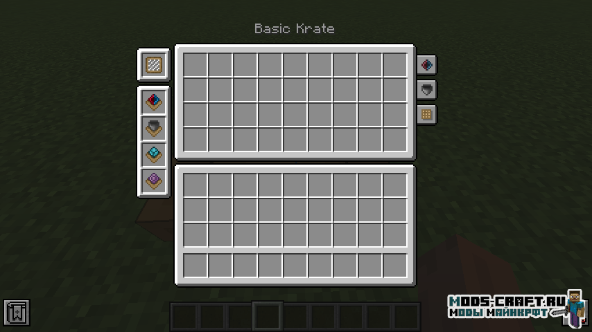 Модификация Krate добавляет 4 новых типа хранилища, отличающихся между собой размером вмещаемого инвентаря. Они обладают блоками хранения данных с возможностью фильтрации блоков и другими полезными улучшениями.