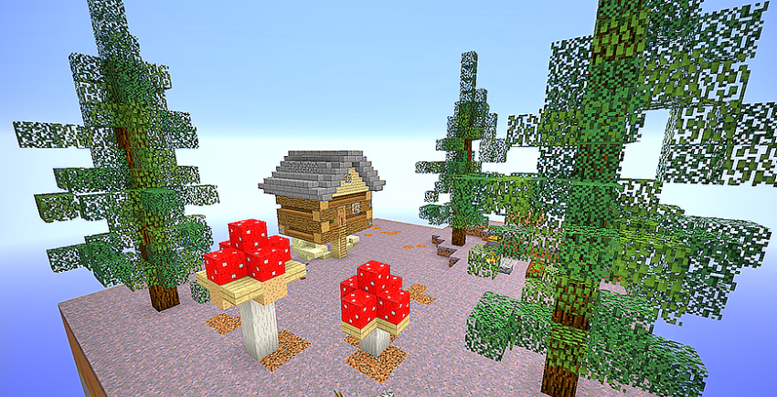 Игрок окажется в лобби с порталом для телепортации на куб. Так же там можно будет ознакомиться с картой и настроить ее. Нажав на имеющийся там куб с кнопкой откроется ларек, через который можно переместиться на пвп с костюмами, головами для декора, паркуром на котором зарабатывают алмазы, кальяном, магазином с амулетами и блоками.