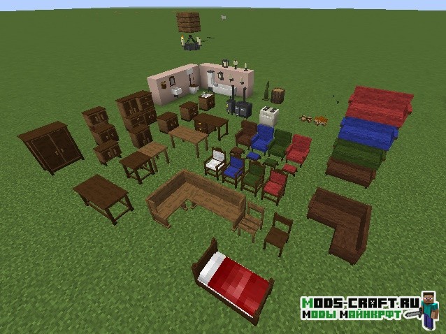 Мод Landlust Furniture добавит мебель в стиле старины и античности в Майнкрафт. Различные стулья, столы, кровати, подсвечники и даже крыши вы сможете сделать и раскрасить в любой цвет.