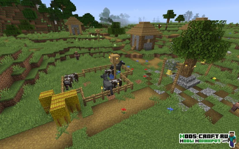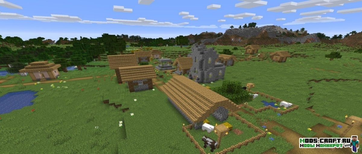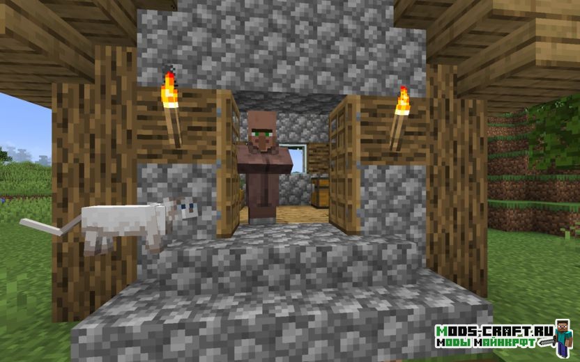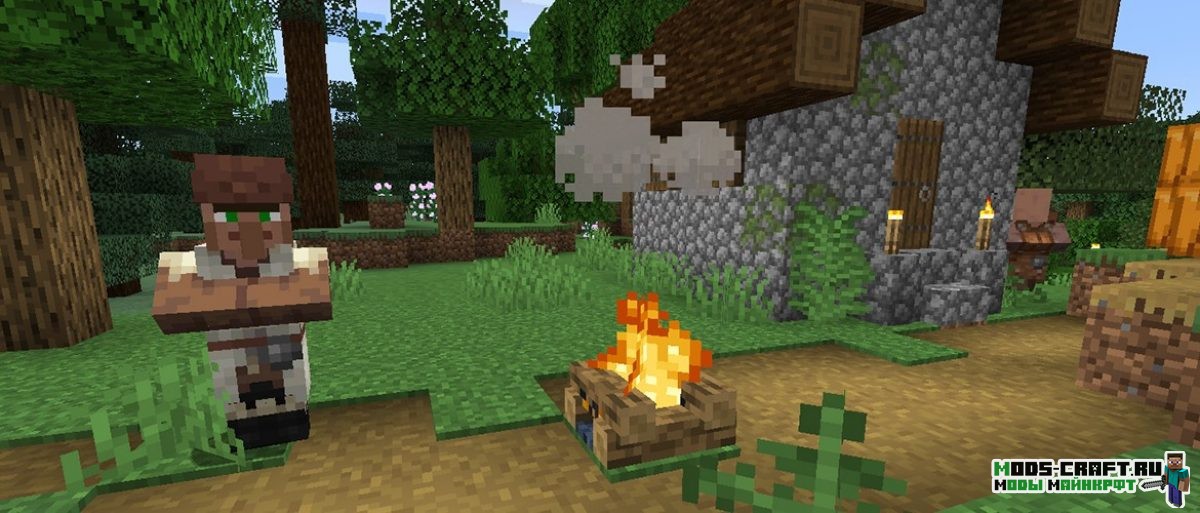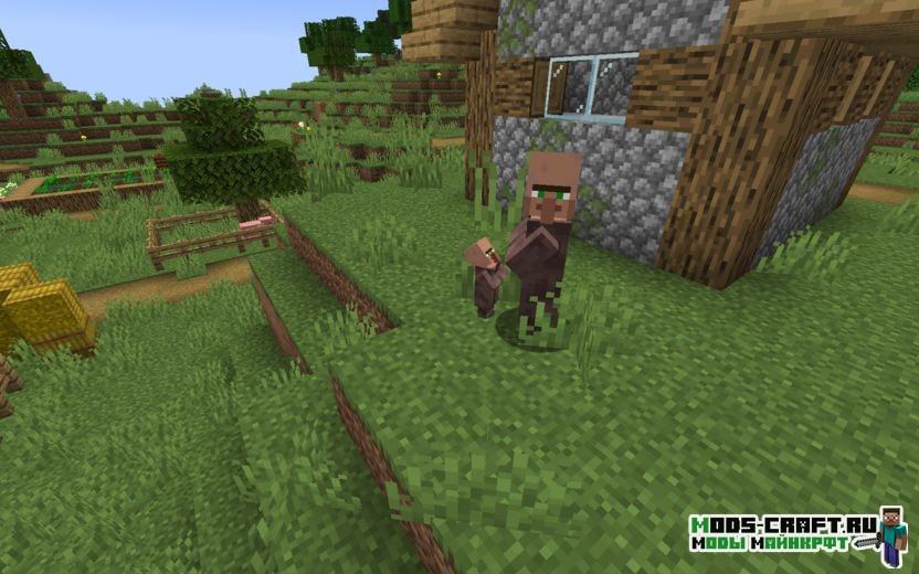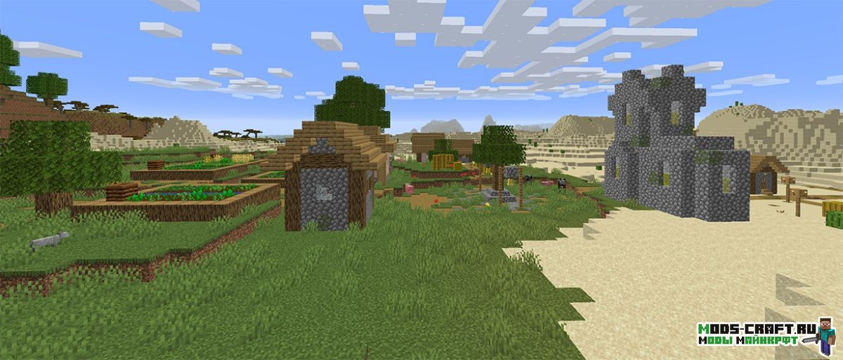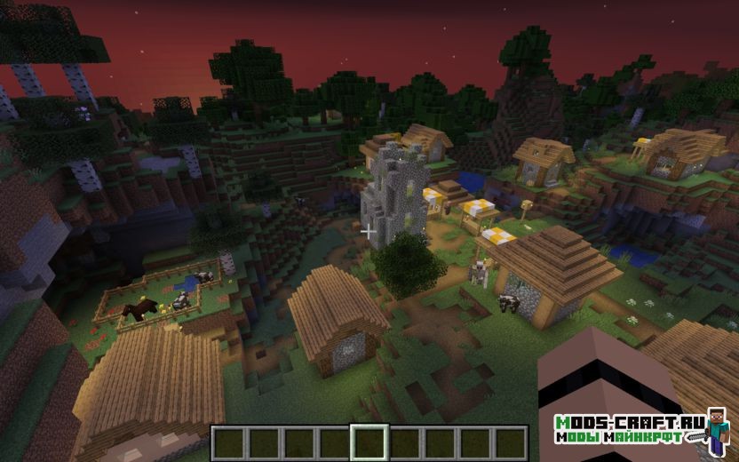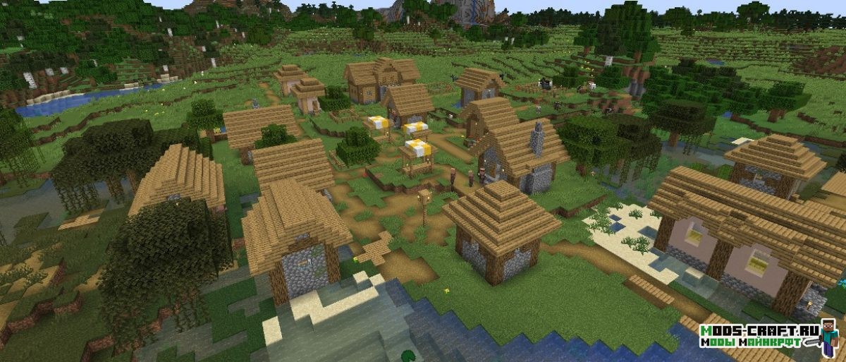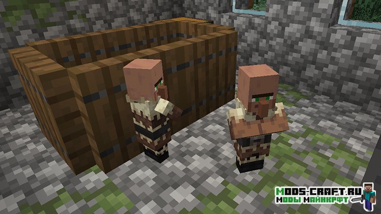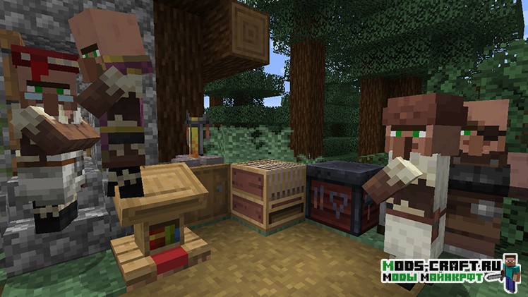 Обновление сильно затронуло деревни и их жителей, я бы даже сказать, очень сильно — в лучшую сторону, разумеется. Каждый житель может обзавестись профессией — их теперь 13 штук, в зависимости от профессии, житель выглядит по-разному. Отныне, жители живут по распорядке дня: днём работают (если нет профессии или дети, то бездельничают), а по ночам спят. Как я выше написал появились дети, что очень приятно. Описывать всё смысла нет, в кратце скажу, что блоков тут куча, начиная от звонков в двери, заканчивая новыми плавильнями и инструментами.