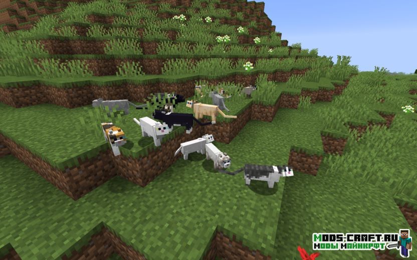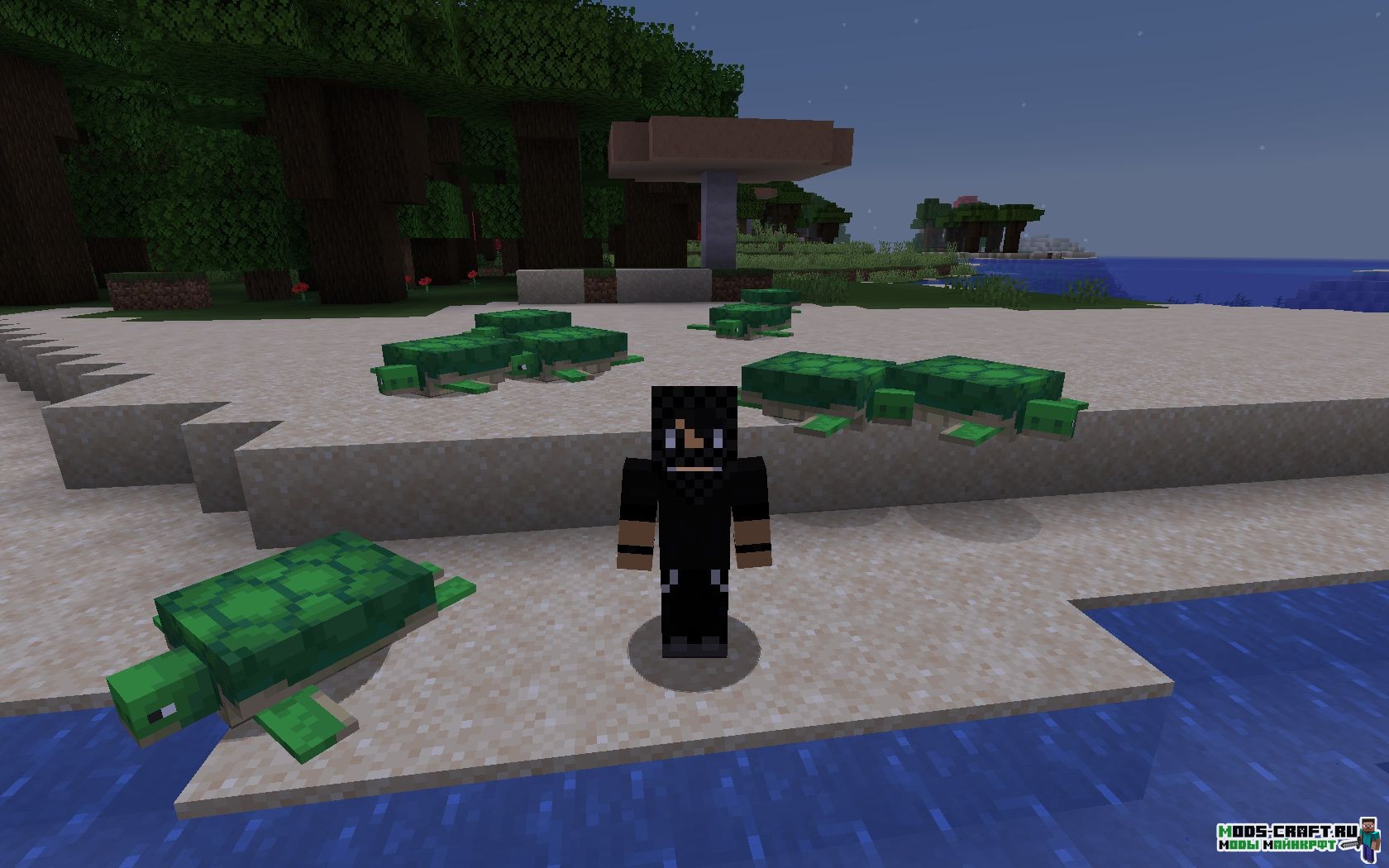 Разработчики уделили очень большое внимание новым мобам и питомцам. Теперь вы сможете встретить в лесу, как я уже говорил, панду, лису, черепах, кошку и даже коричневую грибную корову. Кошки, например, смогут отпугивать фантомов и быть просто красивыми обитателяи вашего дома.