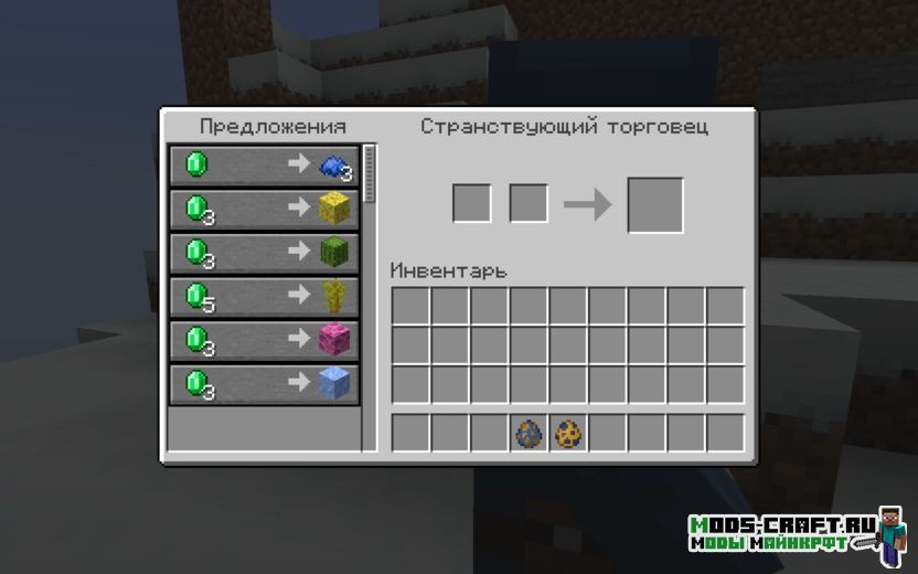 Бродя по миру, вы сможете встретить на своём пути Странствующего торговца с ламой, который одет с синюю одежду. Вы сможете поторговать с ним всем необходимым, что у него есть. Ночью он будет прятаться от монстров с помощью зелья невидимости.