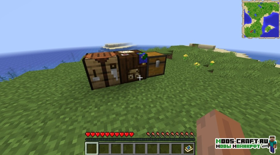 Map Atlases добавляет новый атлас, который будет отображать мини-карту на основе введённых в него ванильных карт. Если атлас будет находится на вашей панели быстрого доступа, то карта отобразиться на игровом интерфейсе в правом верхнем углу.