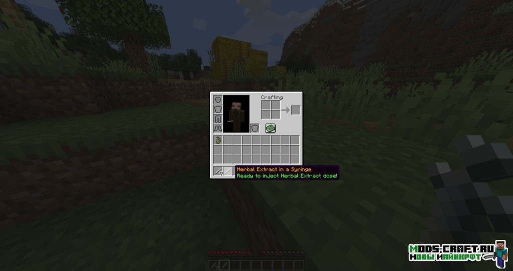 Meds and Herbs — это мод, который добавляет различные лекарства и лечебные травы. Некоторые из них оказывают положительное воздействие на игрока, а некоторые даже имеют ядовитые и опасные побочные эффекты. Чтобы использовать шприц, предварительно необходимо извлечь нужную жидкость из бутылки.