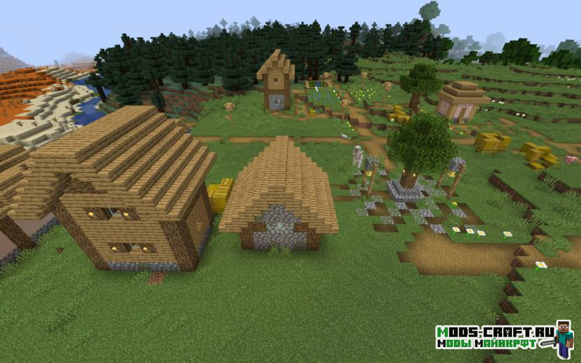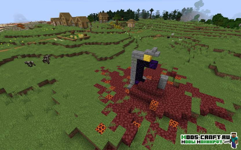 Появившись в данном мире вы появитесь возле месы с шахтой, рядом будет располагаться деревня на равнине. Дальше этой деревни будет стоять разрушенный портал в нижний мир. Удобный сид в плане быстрого развития, ведь мы можем сразу спуститься в шахту и добывать ценные ресурсы для себя, после чего починить портал и отправиться в нижний мир.