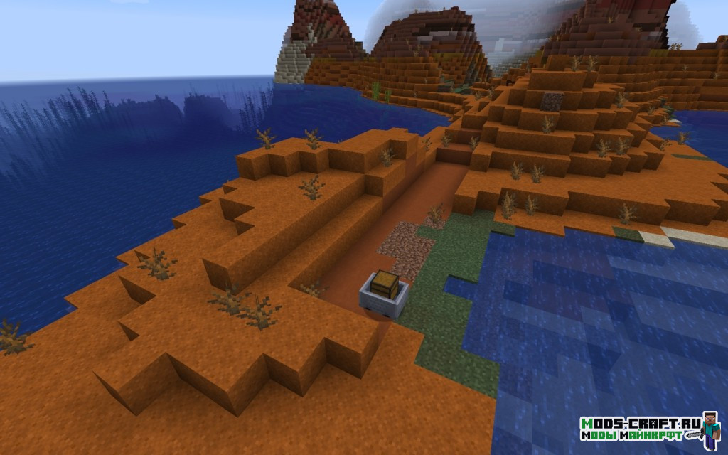 Вы оказываетесь в редком биоме Меза. Рядом с вами будет сундук и спавнер пауков, а в море недалеко находится разрушенный портал. Ещё один спавнер с пауками можно найти по координатам -366, 71, -249.