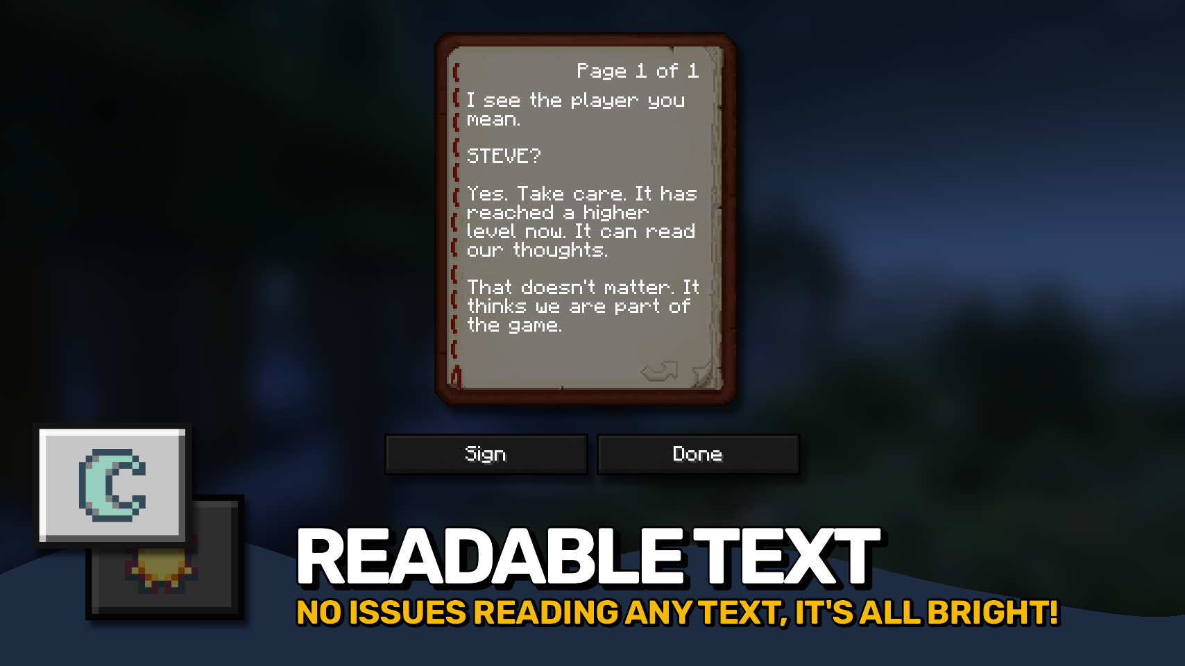 Этот мод значительно улучшает качество игры, обеспечивая комфортное взаимодействие с интерфейсом в разных игровых условиях. Независимо от того, играете вы в ярком солнце или исследуете подземелья, Mindful Darkness автоматически подстраивает яркость интерфейса. Теперь вы можете наслаждаться Minecraft совершенно новым, более комфортным способом.