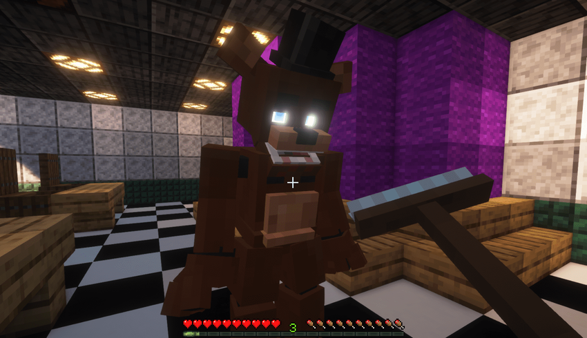 - Команда управления. Присутствие команды «/robots 1», которая делает Фредди злым на любом расстоянии, предоставляет игрокам удобное средство контроля над мобом.