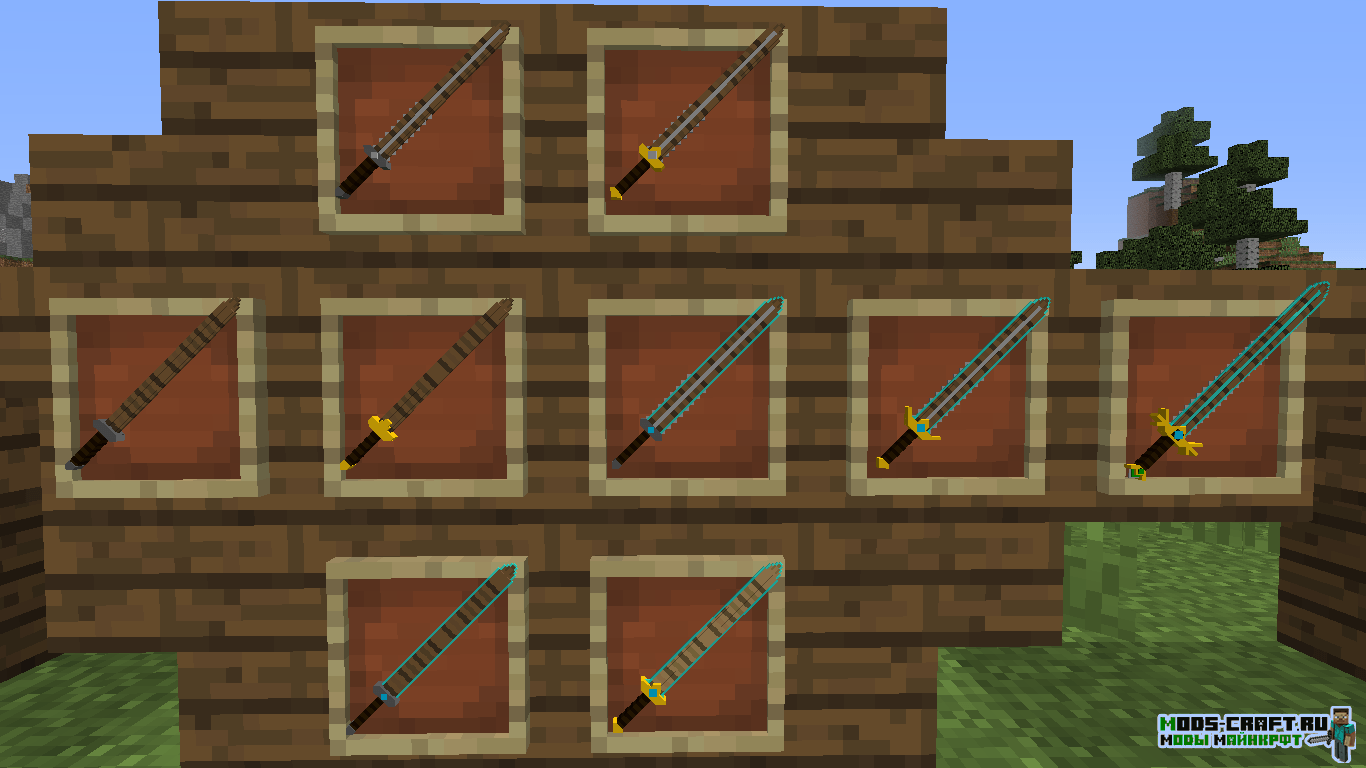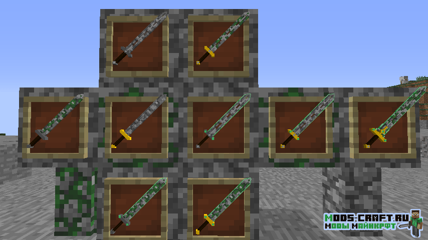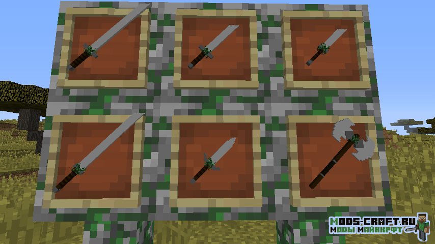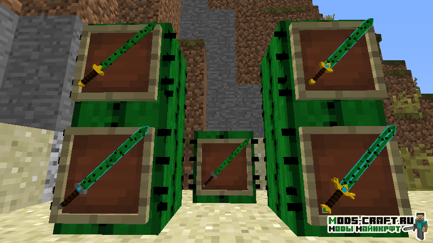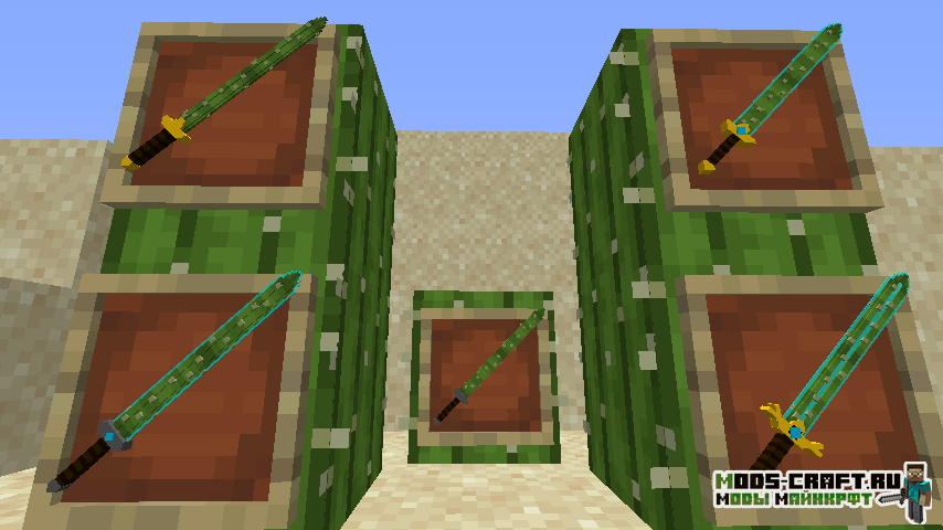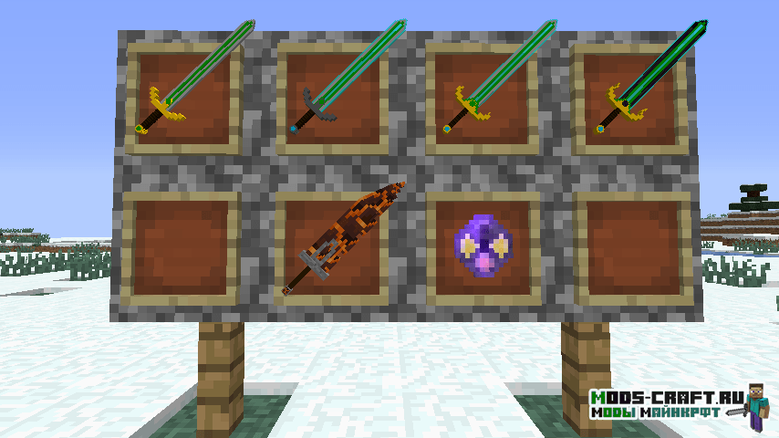 Мод добавит кучу 3D оружия в Майнкрафт — мечи, копья, секиры, булавы и даже рогатки. Помимо этого в игре появятся новые блоки, инструменты, мобы и данжи. Вы сможете найти поселение ящериц и сразиться с ним с помощью новых мечей.