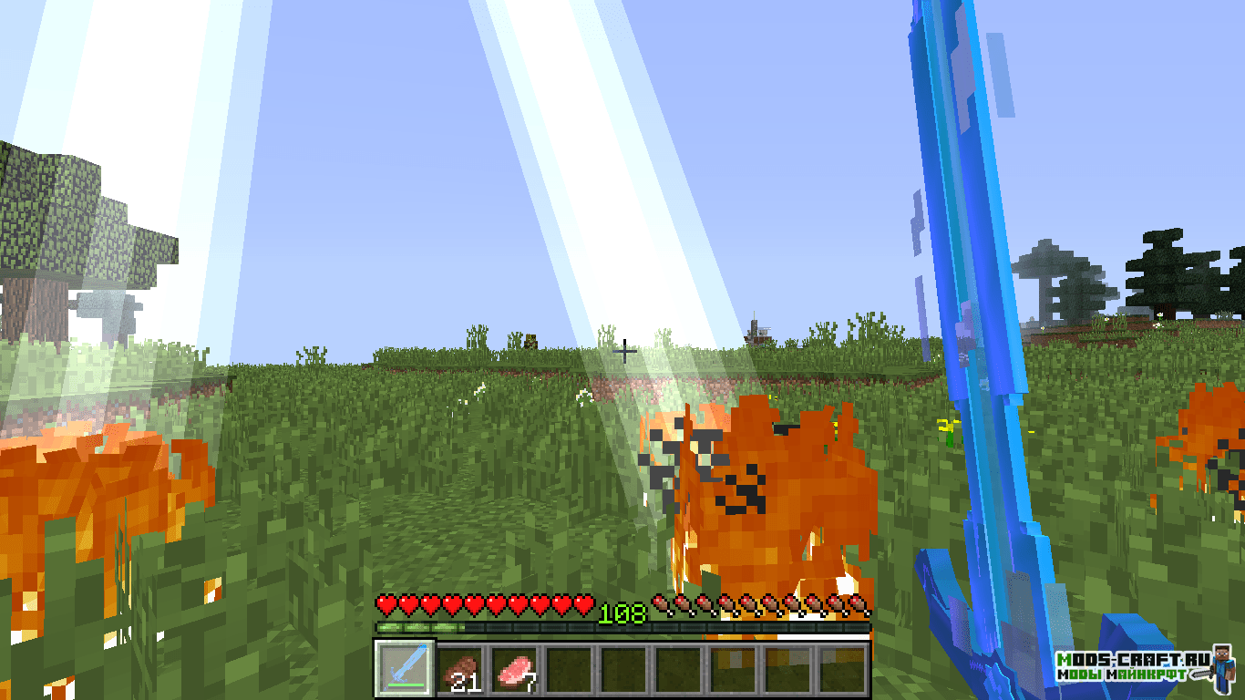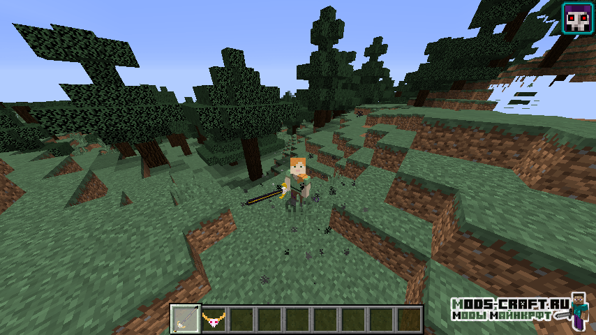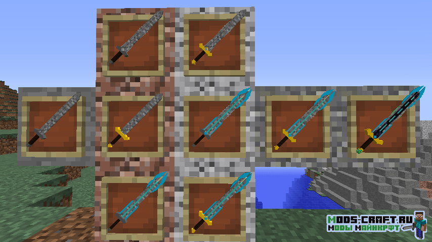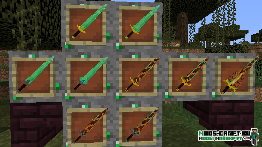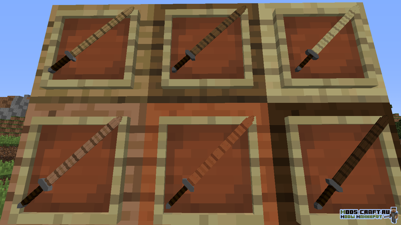 Мод добавит кучу 3D оружия в Майнкрафт — мечи, копья, секиры, булавы и даже рогатки. Помимо этого в игре появятся новые блоки, инструменты, мобы и данжи. Вы сможете найти поселение ящериц и сразиться с ним с помощью новых мечей.