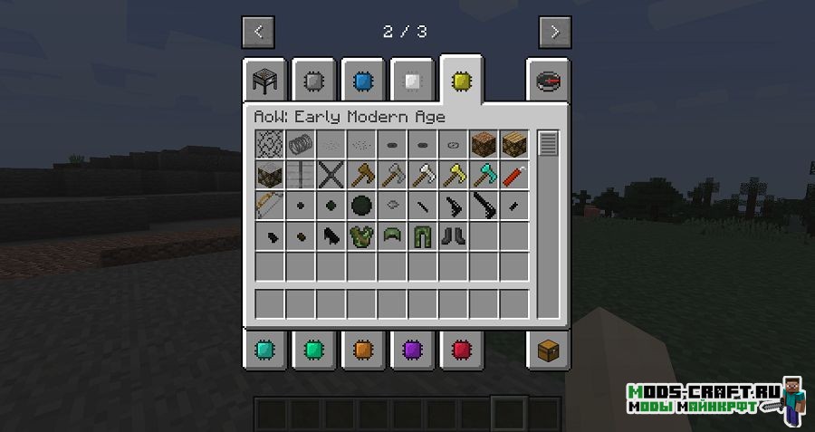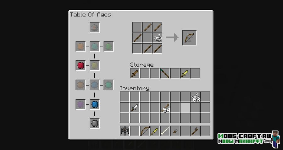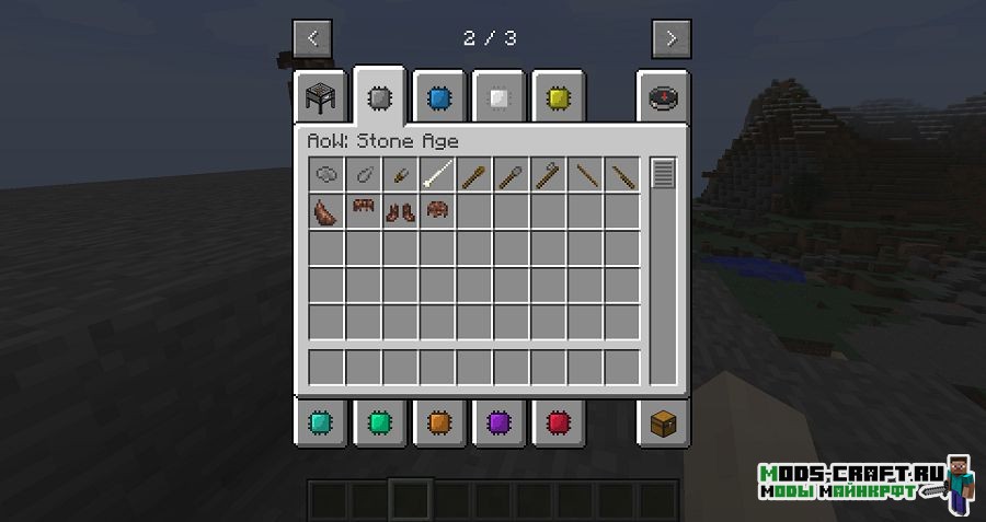 Довольно интересный мод, добавляющий различные предметы, инструменты и оружие — всё это поделено на временные эпохи развития человечества. То-есть, на поздних временных стадиях вы сможете создавать огнестрельное оружие и современные бронежилеты, а на первых порах лишь только палки и топоры.