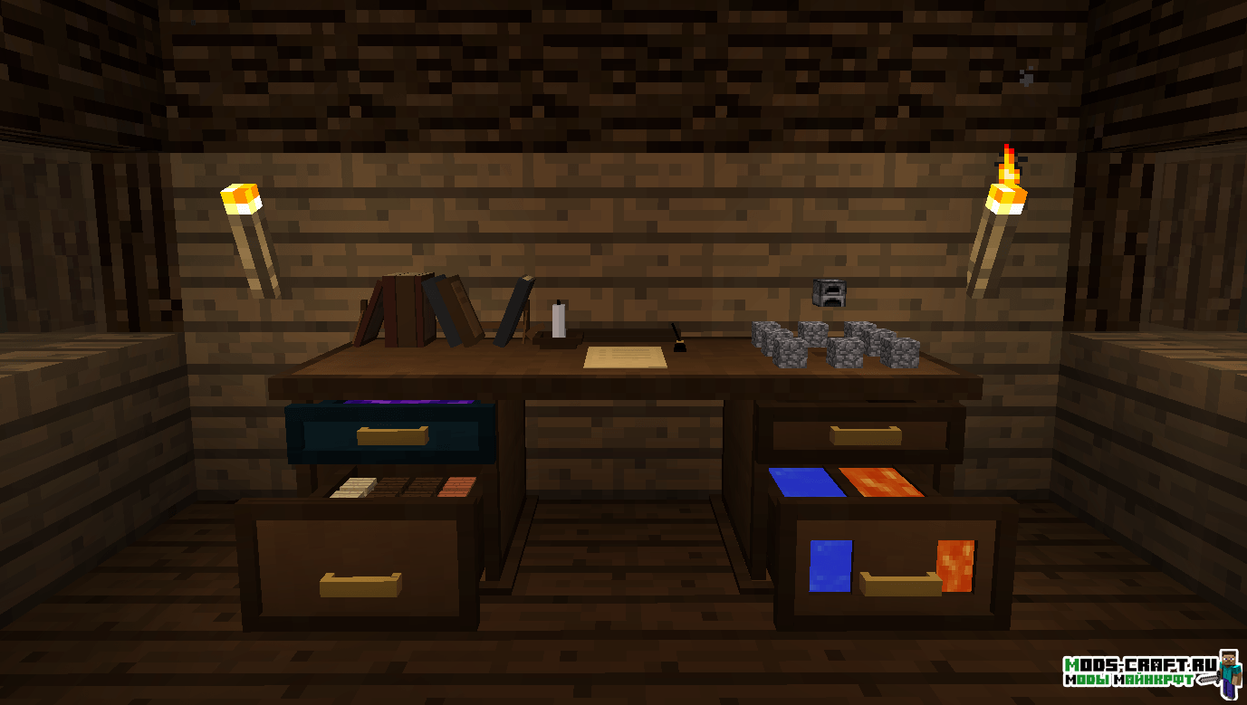 Создайте специальный стол, который позволит вас хранить в нём вещи, крафтить предметы и зачаровывать инструменты. Можно сказать, что это универсальная вещь для вашего дома.