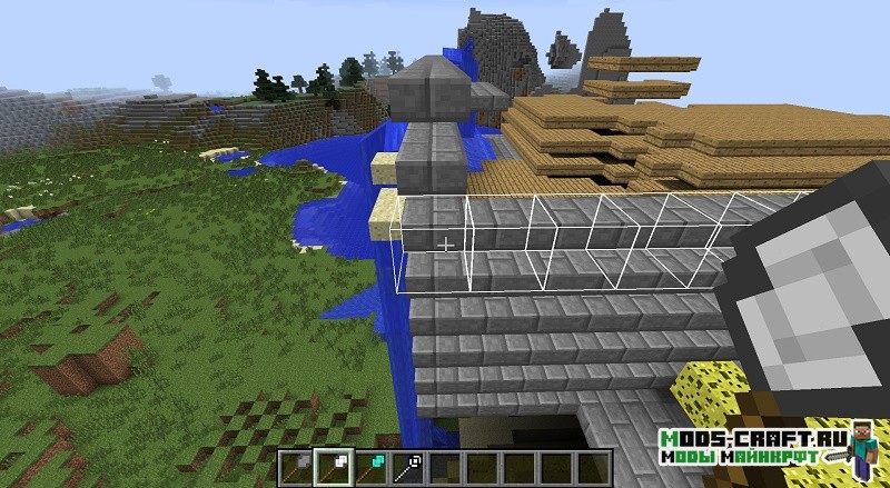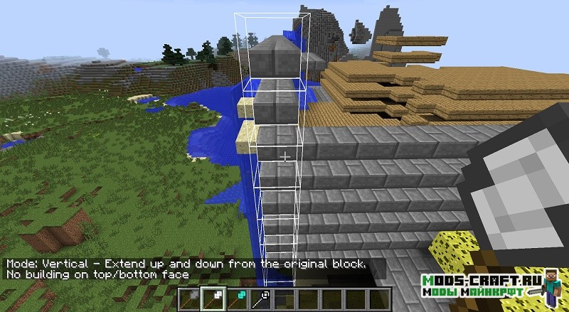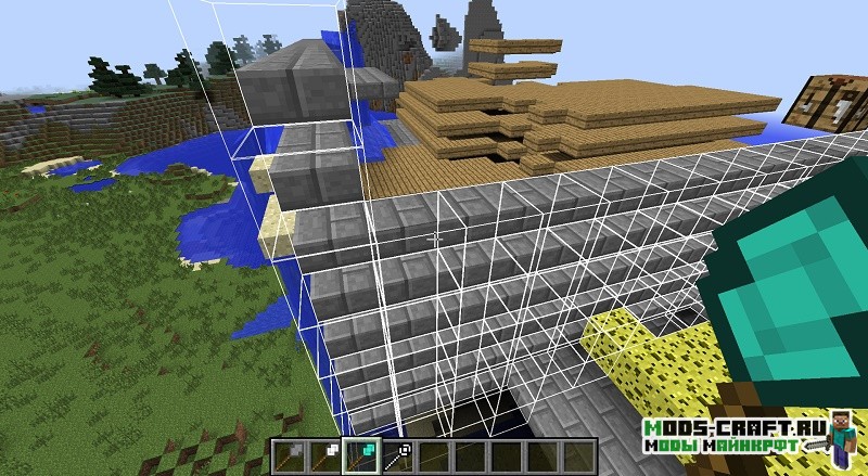 Мод добавит 4 вида специальных палочек для строительства, с помощью которых вы сможете быстро возводить различные объекты и строить что-либо в Майнкрафт. Например, вам будут доступны возможности по строительству зеркальных объектов, размещение одинаковых блоков на большой площади или даже разворот построек.