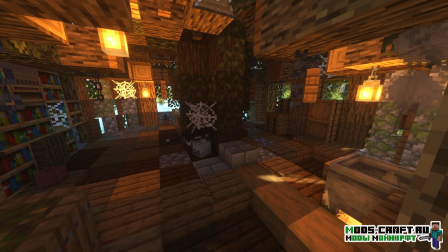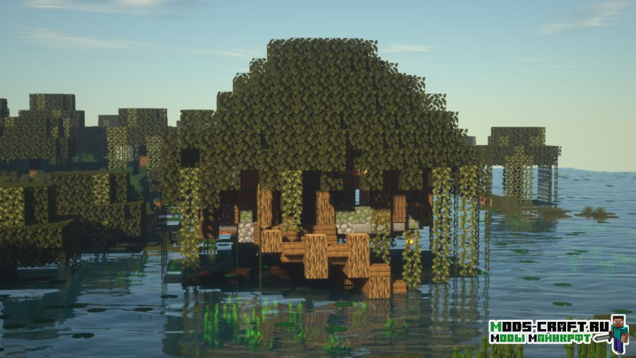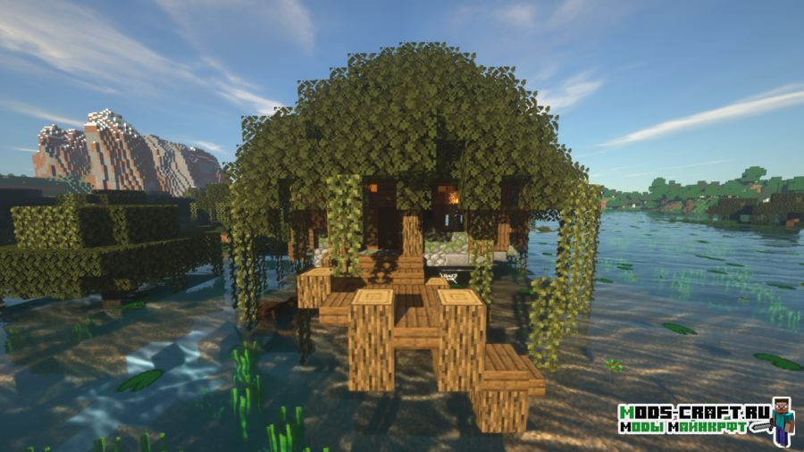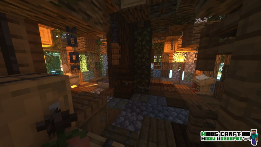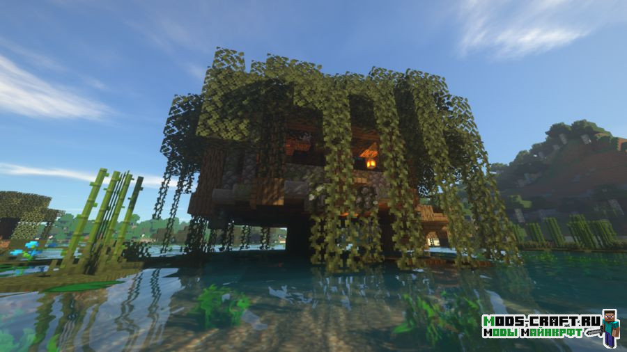 Better Witch Hut добавляет новую структуру, которая будет появляться на болоте — это аналог хижины ведьмы. В ней вы найдёте как саму ведьму, так и пленённого деревенского жителя по имени Гензель. Также стоит поискать пару сундуков с ценным лутом и книгу с заклинаниями. Внешне домик заметить довольно трудно, так как он выглядит похожим на дерево.