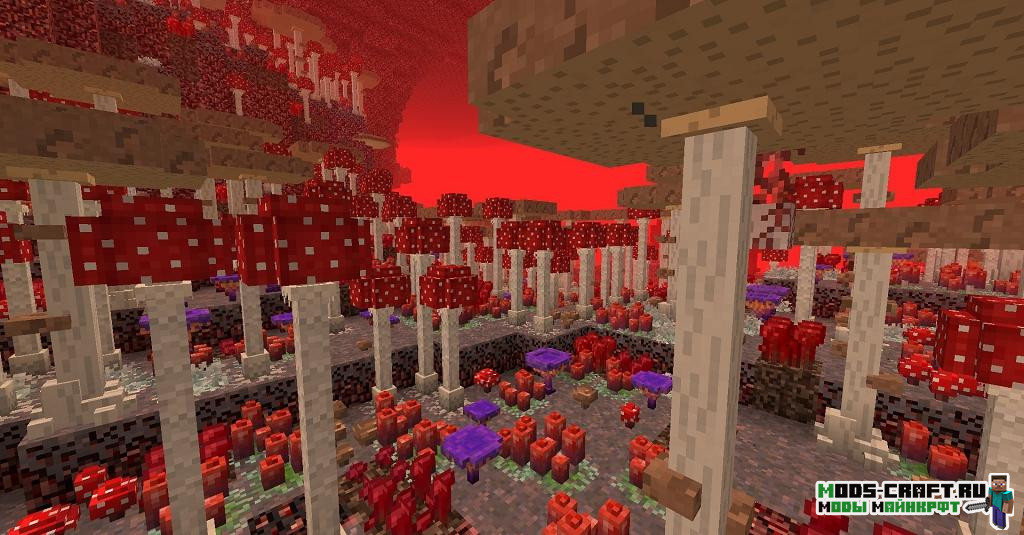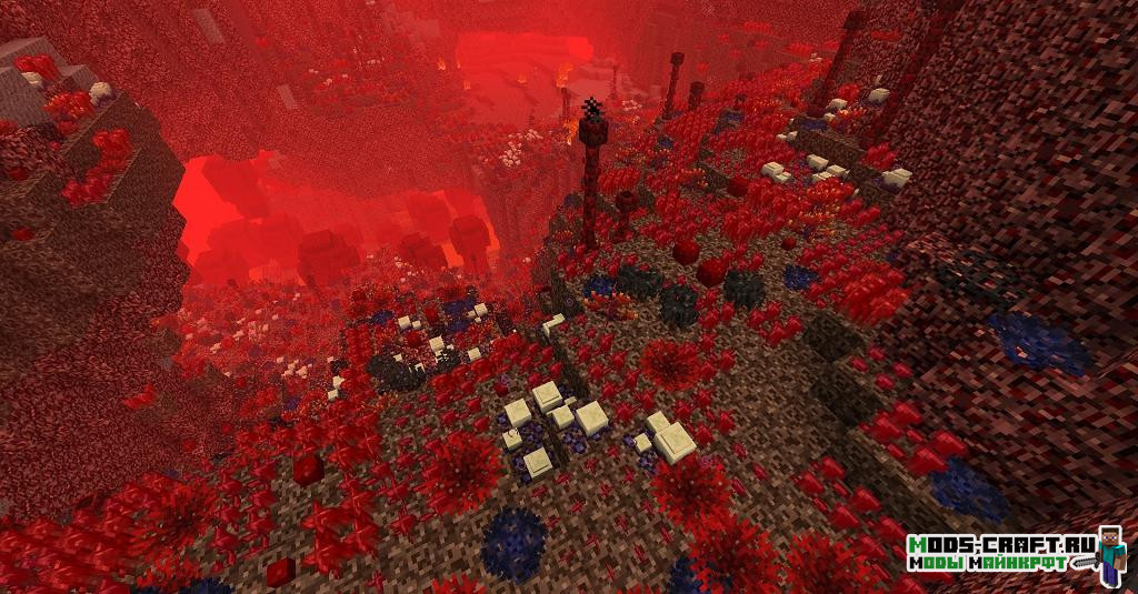 Модификация расширит нижний мир Майнкрафт до неузнаваемости — сделает его более насыщенным живностью, интересными постройками и мобами. Появятся новые биомы, растения, мобы, еда, инструменты, оружие, куча новых блоков, и предметов. Теперь исследовать ад станет гораздо интереснее.