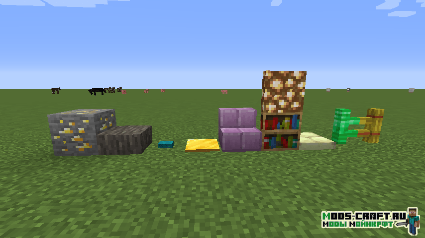 Данный мод является продолжением Carpenter’s Blocks и добавляет базовый набор декоративных блоков: лестницы, плиты, двери, люки, нажимные плиты, кнопки, заборы и иллюзорный блок. Они способны принимать текстуру любого другого блока, включая их свойства, например, применив светопыль на блоке при помощи ПКМ, он будет обладать светимостью.