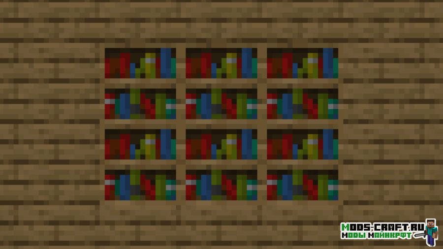 Bookshelving — это простой мод, позволяющий создавать книжные полки из всех пород дерева.