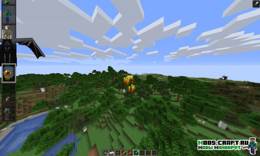 При помощи модификации Budschie’s Morph вы сможете превращаться в любого моба игры Майнкрафт. Это реализовано при помощи интересной системы: после убийства определённых мобов вы получите их души, в которые может зайти игрок. Затем игрок может превратиться в этого моба, нажав клавишу Ж. Само превращение подразумевает не только изменение скина, а получение характеристик моба и его способностей, например, вы можете летать как летучая мышь, пускать огненные шары как ифрит, телепортироваться как эндермен и так далее.