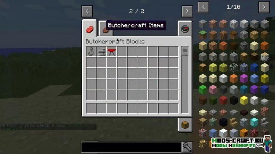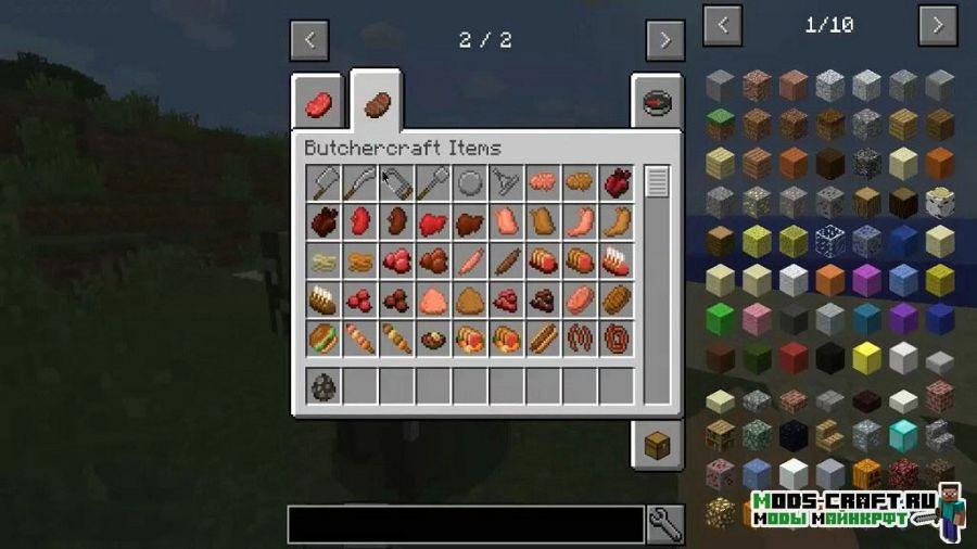 Мод позволит вам разделывать туши животных на специальной доске с использованием новых инструментов мясника, разделочных ножей и ножниц. Кроме этого в игре появятся новые виды пищи, барбекью и стадия разделки скотины.