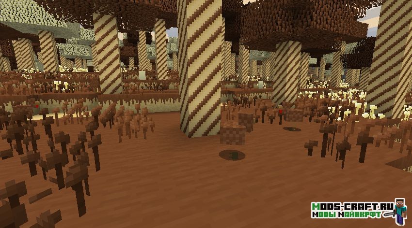 Candy World добавит два новых биома сладостей, где всё состоит из шоколада, конфет, сахарной ваты и других кондитерских вещей. Соответственно, мобы и другие их обитатели будут такими же, смотрится довольно прикольно.