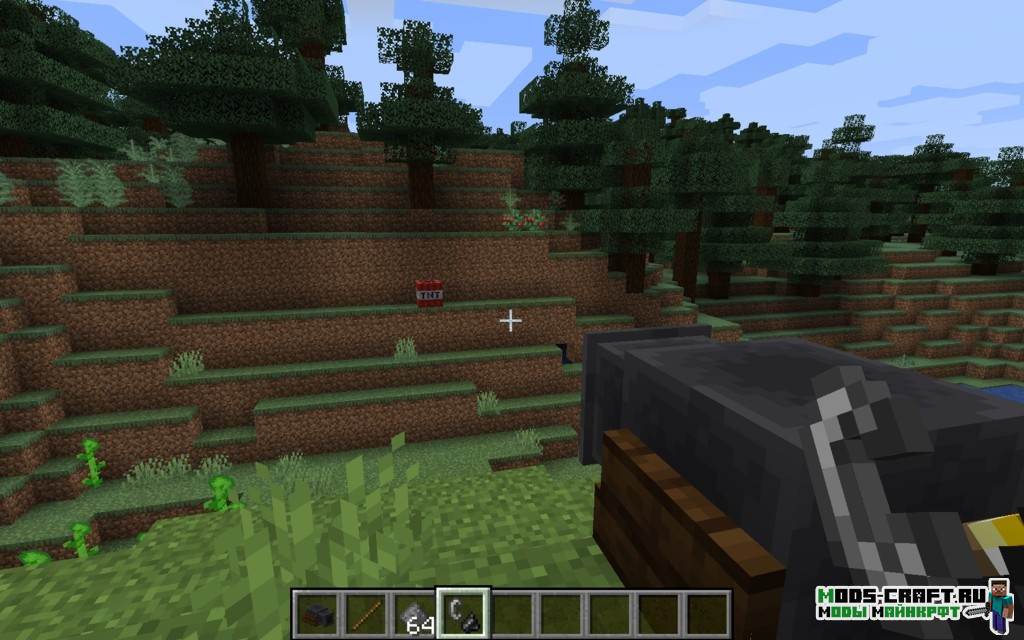 Мод добавит старинную пушку, которая может стрелять динамитом на дальние расстояния. Для этого необходимо поместить сам динамит в орудие, насыпать порох, утрамбовать палкой и поджечь огнивом.