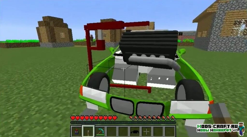 Мод Cars and Engines позволяет вам создавать собственные крутые машины в Майнкрафт и использовать в них различные двигатели. Всего в модификации 8 видов машин и видов двигателей. Колёса и запчасти вы сможете найти в деревнях и гаражах.