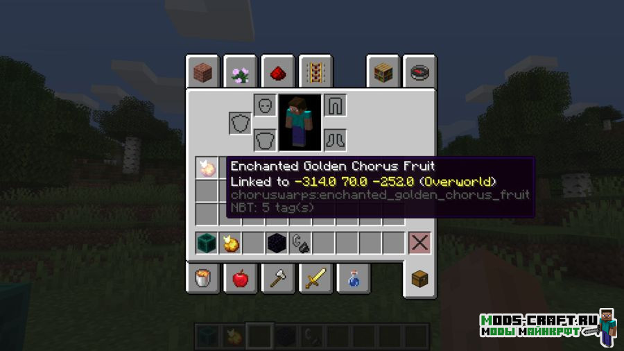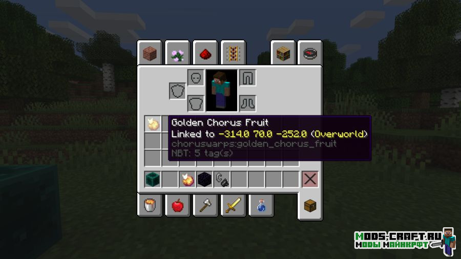 Chorus Warps — это магический мод, приносящий в игру интересную механику телепортации. Для этого необходимо использовать плоды хоруса и специальный блок-телепортатор. Вам необходимо привязать плох хоруса к блоку, в дальнейшем вы просто используете данный предмет, чтобы вернуться обратно к привязанному блоку. Зачарованный предметов хоруса можно использовать бесконечно и он не будет пропадать после того, как будет съеден.