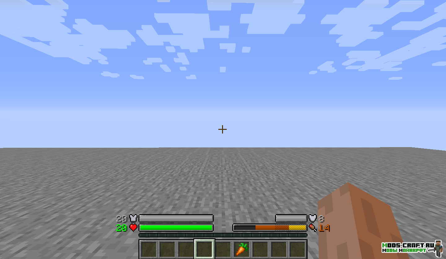 Мод изменяет ванильные иконки основных показателей игрока на новые, более информативные и понятные. Помимо этого, появятся индикаторы насыщения и истощения, которые по-умолчанию не видны. Также сделать сделана интересная фишка, когда вы берёте в руки еду, то анимированный индикатор отобразит возможное удаление голода.