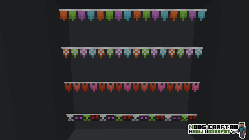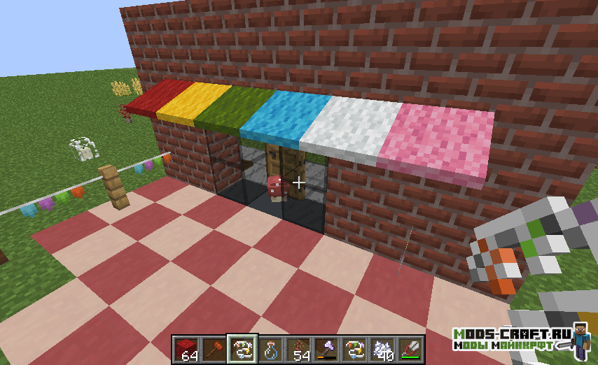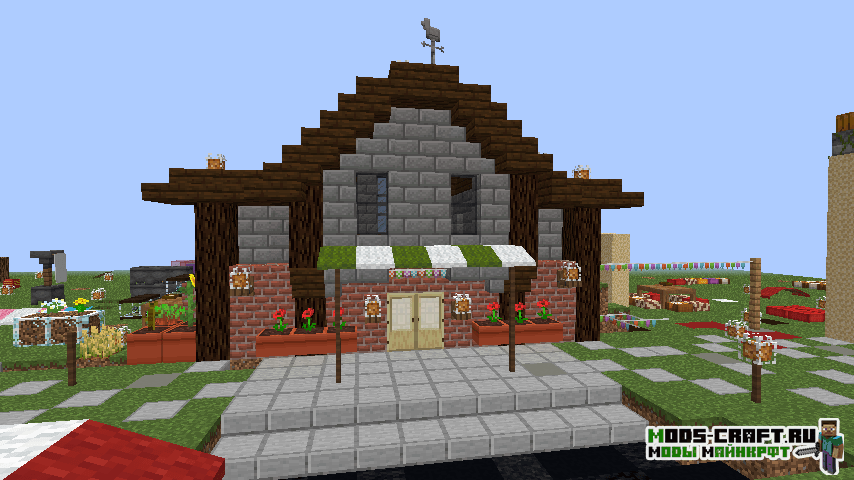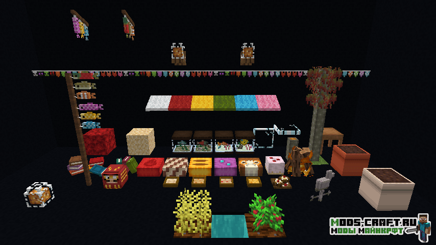 Огромный декоративный мод, добавляющий кучу предметов для украшение интерьера вашего дома в Майнкрафт! Автор полагает, что данные предметы помогут создать уютную атмосферу вашего пребывания в игре. Вы сможете создать различные занавески, жалюзи, навесы, аквариум, декоративные книги, горшки с выращиванием в них урожая, а также повстречать новую свинью, покрытую грязью.