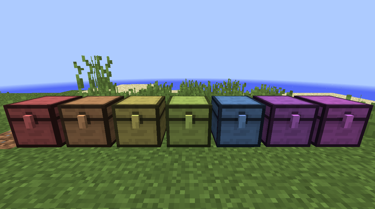 Мод добавит множество новых компактных сундуков, которые занимают мало место, но вмещают много вещей в себя. Самый большой вмещает 288 слотов лута.